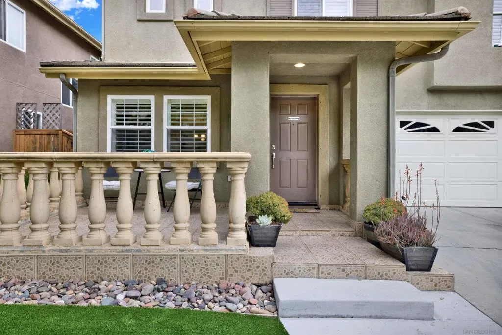 RARE FIND! VA ASSUMABLE LOAN at 3.875%! Incredible opportunity to own this beautifully designed home on a quiet cul-de-sac in a wonderful community. The thoughtful interior offers 2 spacious living areas downstairs, while the upper level features 4 generous bedrooms and a versatile loft landing ideal for a home office. Enjoy elegant plantation shutters that bring a polished, cohesive look to every room and the convenience of dual closets in the primary suite. Outside, the charming front porch and covered back patio overlook a low-maintenance turf yard, perfectly paired with leased solar at a fixed payment for predictable energy costs. Beyond the home, you’ll enjoy a vibrant, walkable community with a remarkably LOW HOA! The location is unbeatable for convenience, situated around the block from Vista Pacifica Park and minutes from Otay Ranch Mall, North Island Credit Union Amphitheatre, and Sesame Place. Don’t miss your chance to own this exceptional home!