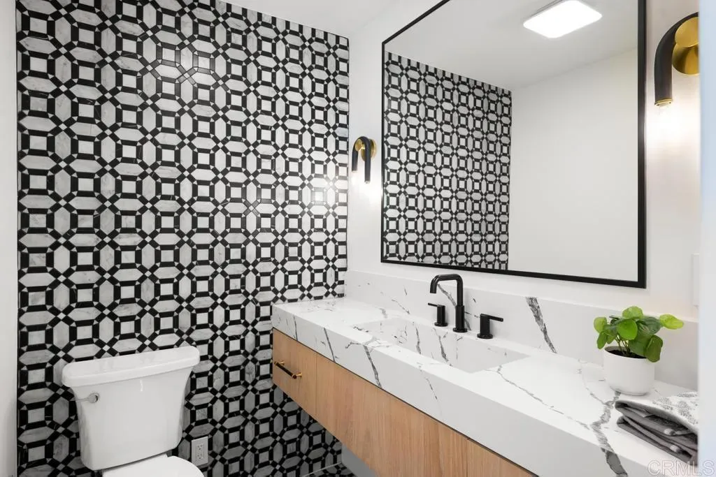 Welcome to this fully renovated 4-bedroom, 2.5-bath home on Lance Place in the highly sought-after Del Cerro neighborhood (92120), featuring a brand new roof and extensive upgrades throughout. From the moment you arrive, you’re greeted by a stunning custom front door and strong curb appeal with fresh exterior paint, a new driveway, new garage door, updated lighting, concrete steps, and new planters. Inside, the home has been thoughtfully redesigned with a clean, modern aesthetic. The kitchen is a true centerpiece, featuring custom white oak cabinetry, quartz countertops, marble flooring, premium Forno appliances, and a Delta pot filler and faucet. The open-concept living space is warm and inviting with a statement marble fireplace and custom white oak arches, while the dining area offers built-in cabinetry and a new chandelier, perfect for entertaining. All bathrooms have been fully remodeled with designer finishes, including marble tile in the powder room, white oak vanities, quartz countertops, and Delta fixtures. Additional upgrades include new dual-pane windows, new interior and exterior doors, and updated flooring throughout. Step outside to enjoy the covered patio and a spacious 7,840 sq ft lot. Ideally located near Lake Murray, top-rated schools, and convenient I-8 access, this move-in ready home offers elevated design in one of San Diego’s most desirable neighborhoods.