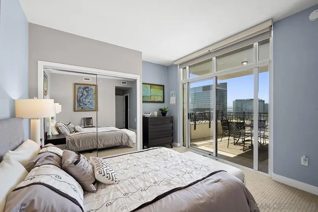 Pristine Park Place Residence with Bay & City Views This 1,233 sq. ft. northwest-facing condo at the prestigious Park Place offers a perfectly designed split two-bedroom floor plan with sweeping views of The residence features a pristine modern chef’s kitchen, as well as an expanded island with room for seating, while showcasing the entrancing City and water views that span from Downtown, Coronado, the Bay and beyond to Point Loma. A massive private patio seamlessly extends the living space, creating the ultimate setting for dining, entertaining, or simply enjoying the city lights.The primary bedroom has its own large private patio as well. Park Place residents enjoy resort-style amenities including a pool and spa, fitness center, 24-hour concierge, and secure parking. Ideally located in the Marina District, the property is within a stone’s throw of the waterfront, Seaport Village, The Rady Shell, and downtown’s finest dining and shopping. Pristine Northwest-Facing Residence with Panoramic Views at Park Place with 2 private patios Highly sought after and desirable 1,233 square foot condominium in the prestigious Park Place community offers a refined balance of elegance, comfort, and location. The perfectly designed split two-bedroom floor plan is oriented to maximize both privacy and livability, while showcasing the entrancing City, and Water views that span from Downtown, Coronado, the Bay and beyond to Point Loma. The primary bedroom has its own large private patio. The residence features a pristine, elegantly renovated kitchen, highlighted by an expanded island with room for seating. The seamless flow from kitchen to living space creates an inviting environment for both entertaining and everyday living. A true standout feature is the massive private patio, offering an exceptional extension of the living space. Perfectly positioned to capture the iconic San Diego skyline and coastal breezes, it serves as a rare opportunity for outdoor dining, relaxation, and entertaining. Park Place residents enjoy exclusive access to a collection of luxury amenities, including a resort-style pool and spa, fitness center, 24-hour concierge service, community lounge, and secure parking. Ideally situated in the coveted Marina District, the property is within a stone’s throw of the waterfront, Seaport Village, The Rady Shell, and the city’s finest dining, shopping. This pristine residence presents a rare opportunity to own in one of downtown San Diego’s most distinguished addresses