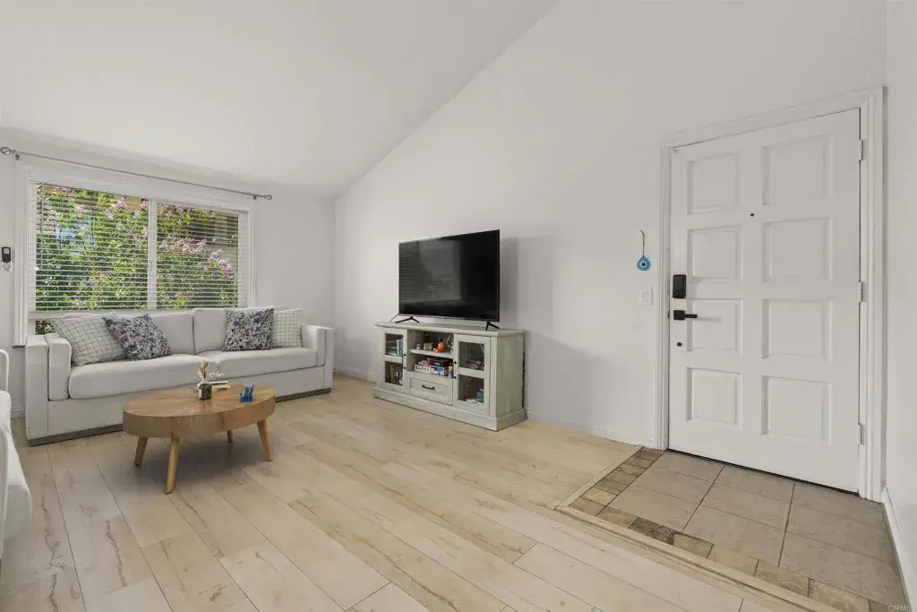 Welcome to this beautifully upgraded top-floor, end-unit condo located in the heart of San Diego’s desirable College East neighborhood—just minutes from SDSU, Lake Murray, and the 70th Street trolley. This bright and airy 2-bedroom, 2-bath residence features vaulted ceilings, sleek laminate flooring throughout, and a fully remodeled kitchen complete with granite countertops and stainless steel appliances. Thoughtful upgrades include recessed lighting, mirrored closet doors, and modern finishes throughout. The open-concept floor plan creates a seamless flow from the living space to a private balcony, perfect for enjoying San Diego’s year-round sunshine. Additional highlights include in-unit laundry, ductless Mini-Split A/C, ceiling fans, and a dedicated covered parking space. Situated within the secure, gated Saranac Villas community, this move-in-ready home is ideal for professionals, SDSU students or staff, or anyone seeking low-maintenance living with unbeatable access to urban conveniences and nearby outdoor recreation. A rare opportunity combining style, location, and comfort—don’t miss it.