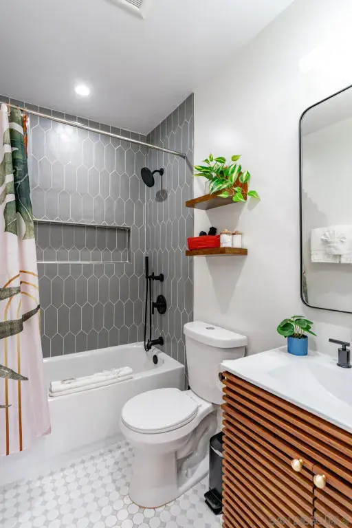 Furnished Quaint Studio in Charming Marston Hills Discover this recently renovated studio tucked in the vibrant Marston Hills/Hillcrest neighborhood, offering a stylish blend of modern finishes and cozy charm. Perfectly designed for comfort and convenience, this furnished unit provides a private retreat in one of San Diego’s most desirable locations. The open layout features a queen bed with luxe linens, a comfortable living area with plush seating, and a flatscreen TV for relaxing nights in. A thoughtfully designed kitchen boasts stainless steel appliances and ample storage, ideal for preparing meals at home. The updated bathroom includes a tiled shower and elegant finishes, creating a spa-like escape. Stay cool year-round with a mini-split A/C system. Additional highlights include one designated on-site parking space and a peaceful setting, all while being just moments from Hillcrest’s eclectic dining, shopping, and entertainment, plus Balboa Park and downtown San Diego. Whether for a short-term furnished rental or an extended stay, this studio combines urban convenience with cozy sophistication. Sleeping Accommodations (Max 2 Guests): Studio: 1 Queen Bed