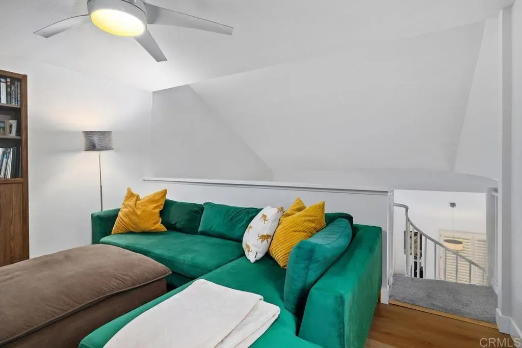 Beautifully upgraded 2 bed, 2 bath upper corner unit in a private and quiet location, featuring soaring vaulted ceilings and a bright, open layout filled with natural light. The spacious living room features a cozy fireplace and flows seamlessly to a large private patio, creating ideal indoor-outdoor living. The modern kitchen offers white shaker custom cabinetry, quartz countertops, a stylish tile backsplash, and updated lighting, opening to the dining and living areas. Luxury vinyl flooring runs throughout, complemented by upgraded lighting, additional built-in ceiling lights in each room, and remodeled bathrooms with custom vanities and quartz countertops. Newer HVAC and appliances add to the home’s comfort and efficiency. A standout and rare feature is the versatile loft overlooking the living area — perfect as a home office, guest room, gym, or additional living or entertainment space. Located in the desirable Canyon Park Villas community, residents enjoy access to over 17 acres of amenities including a pool and spa. Includes 2 reserved parking spaces (1 covered, 1 uncovered). Walking distance to Lopez Ridge Park with covered Kids playground, basketball court, and baseball field and more. Just minutes to Sorrento Valley, UCSD, La Jolla. Closed to the beaches, Downtown San Diego, and major freeways including the 5, 805, and 15.