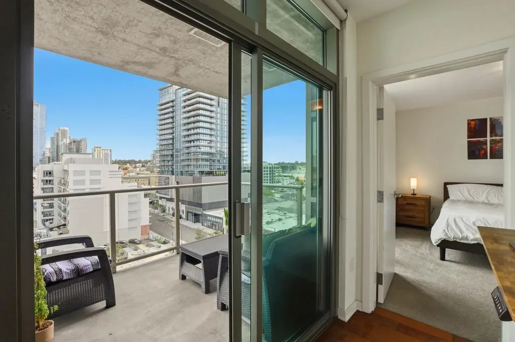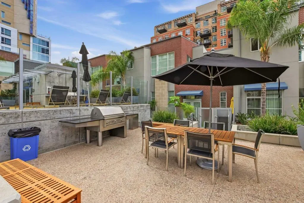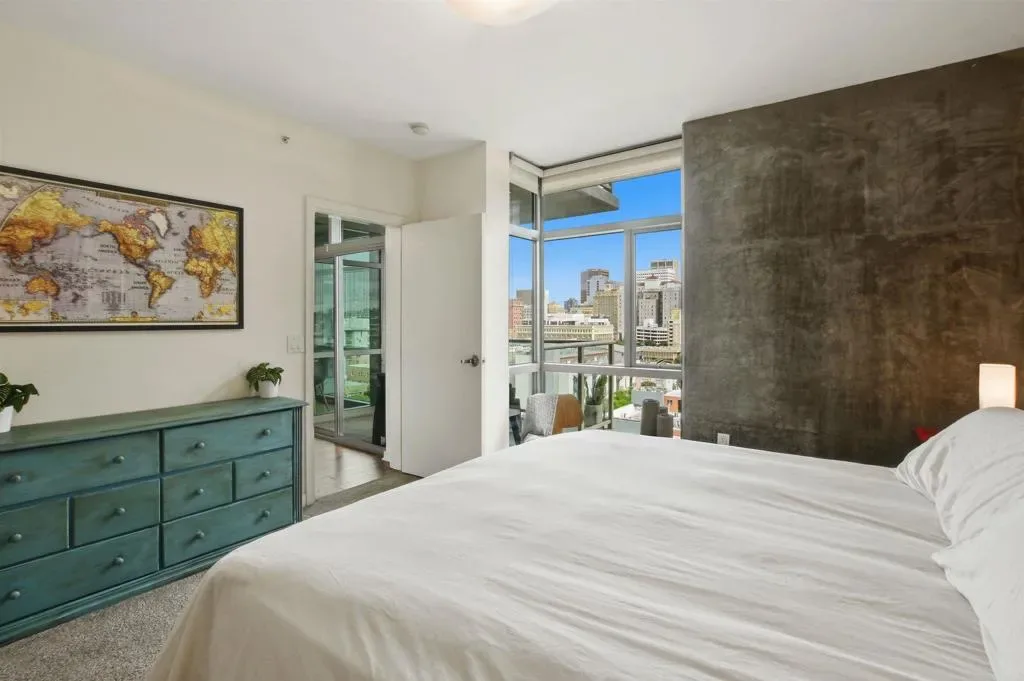 Experience elevated urban living in this stunning 10th-floor residence at The Mark in the heart of East Village. This modern concrete high-rise condo showcases sweeping city views from a private balcony and dramatic floor-to-ceiling windows that fill the space with natural light. The thoughtfully designed interior features a gourmet kitchen with granite countertops, European-style cabinetry, and stainless steel appliances, seamlessly opening to the living area for effortless entertaining. Enjoy resort-style amenities including a 55-foot lap pool, spa, state-of-the-art fitness center, and beautifully designed outdoor courtyard with BBQ areas. Just steps from Petco Park and moments from the dining, nightlife, and entertainment of Gaslamp Quarter, this residence offers the perfect blend of luxury, convenience, and vibrant downtown living.