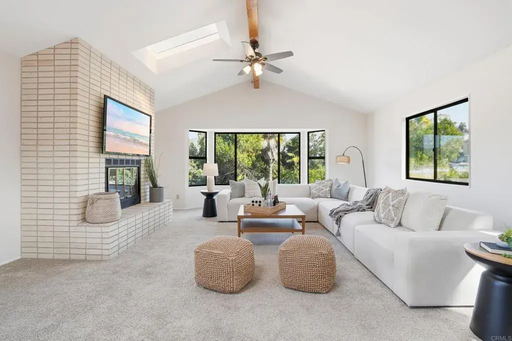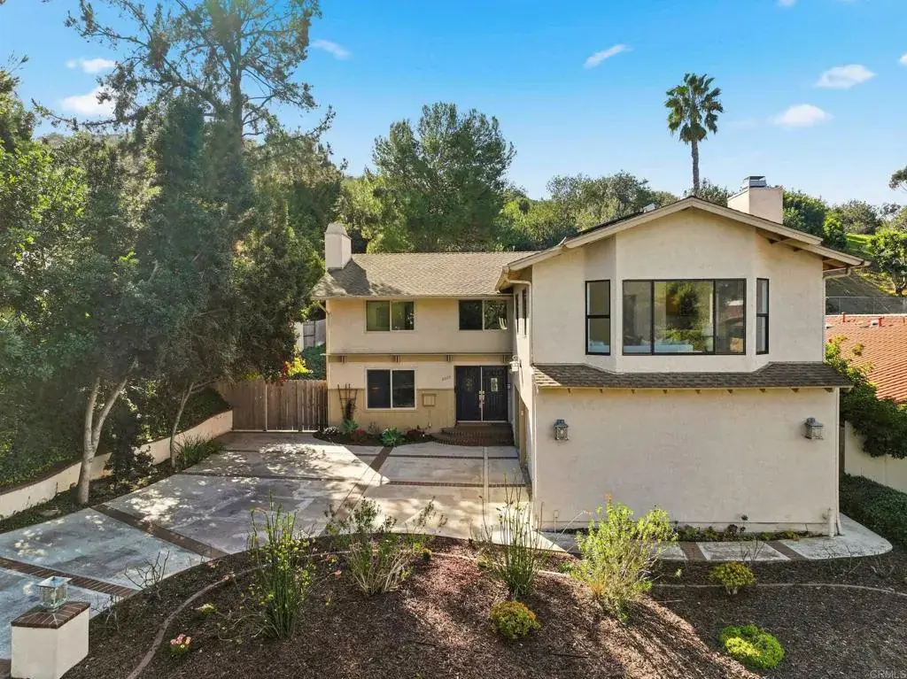 Introducing a spacious Del Cerro home offering remarkable flexibility, generous interior space, and a backyard that feels like a year-round retreat. Directly adjacent to the extensive trail network of Mission Trails Regional Park and the San Diego River corridor, this residence provides natural beauty right at your doorstep. Designed for versatility, this home adapts easily to a variety of living arrangements. It can live as a 5-bedroom home with a 2nd-floor family room, or configured as a 6 bedroom home, well-suited for multi-generational living, extended visitors, or anyone who needs separate spaces throughout the home. The main level features wood floors, a welcoming living room with fireplace, and a kitchen and dining room that open to the backyard through sliding doors—creating ideal indoor–outdoor flow. Two bedrooms, a full bathroom, and a dedicated laundry room with access to the 3-car garage complete the first floor. Upstairs, the primary suite offers a peaceful retreat with its own fireplace, a walk-in closet outfitted with an Elfa storage system, and a spacious bath with soaking tub, separate walk-in shower, and dual vanities. The show-stopping family room impresses with vaulted ceilings, a fireplace, views of Cowles Mountain, and abundant space for gathering. Its attached bathroom allows this room to function as an optional 6th bedroom. Two additional upstairs bedrooms share a vintage 1970s bathroom with dual sinks. The backyard is a highlight, featuring a newly resurfaced pool with new heater, pump and filter, elevated spa with waterfall feature, and direct connection to open space and nature trails. Additional enhancements include fully owned 22-panel, 8.8 kW solar with Enphase microinverters, significantly reducing electricity costs. The home is located within the highly regarded Dailard Elementary School boundaries on a quiet, low-traffic street dotted with neighborhood “little free library” boxes and friendly walking paths. A rare opportunity to enjoy abundant space, versatile living, and effortless access to one of San Diego’s most beloved outdoor destinations.