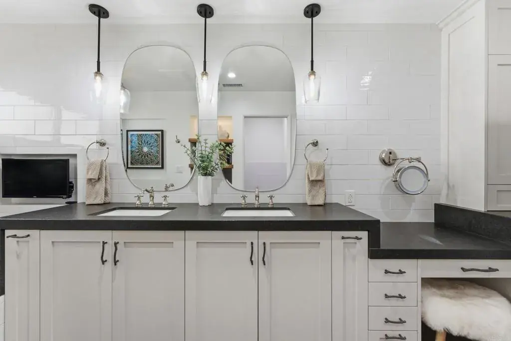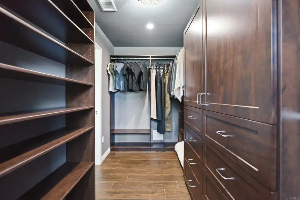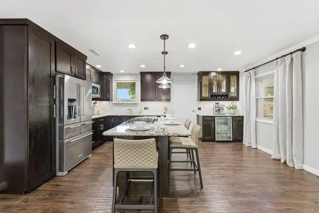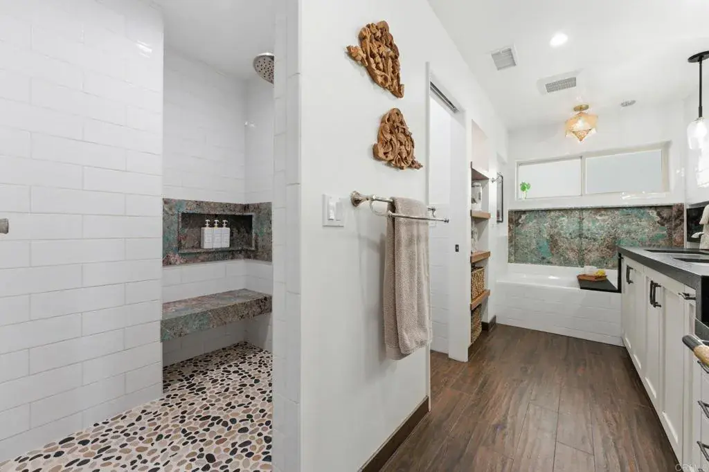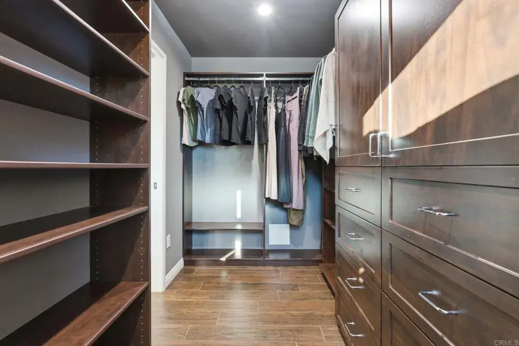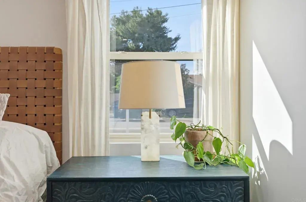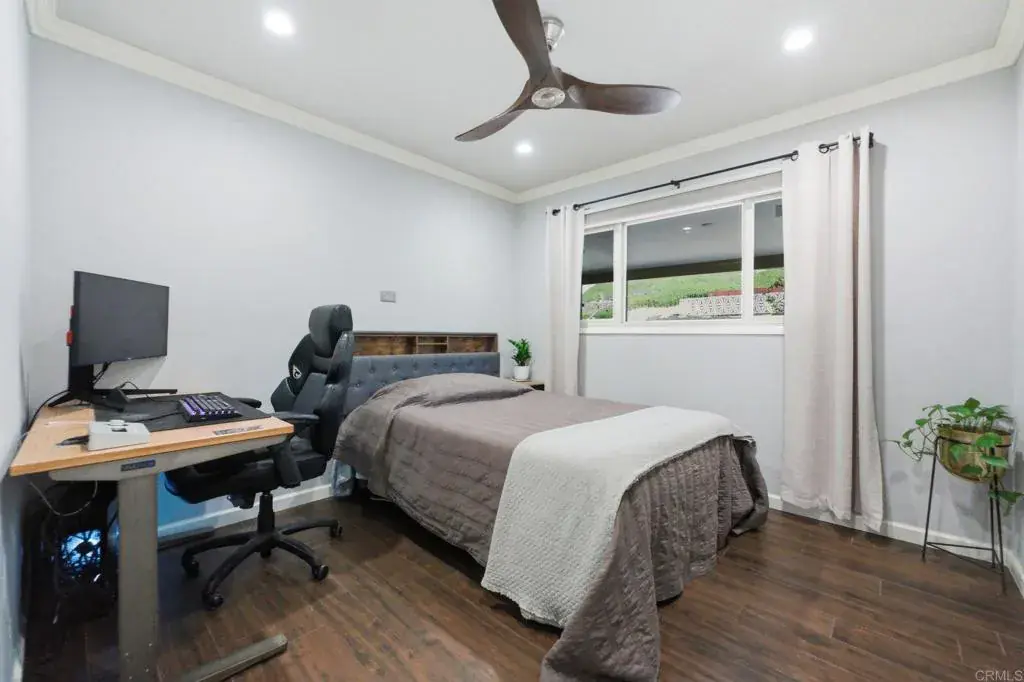 Offered for the first time in over twenty years, this meticulously maintained, turnkey 3-bedroom, 2-bath home was thoughtfully remodeled and expanded in 2019, creating a luxurious primary suite, two full bathrooms, and enhanced storage including a large linen closet. Every detail reflects pride of ownership and high-end craftsmanship throughout. The expansive primary suite is a private retreat featuring vaulted ceilings, a generous walk-in closet, soundproof insulation, motorized window shades, and a spa-inspired bathroom. Enjoy a jetted soaking tub with ceiling-mounted tub filler, a separate oversized shower with handmade Spanish tile and a stunning amazonite slab, designer vanity, and a washlet. The second bathroom also includes a washlet for added comfort. Solid wood doors with premium hammered brass hardware complement durable wood-grain porcelain tile flooring that flows seamlessly throughout the home. Exceptional curb appeal welcomes you with a Santa Fe–style stucco exterior, zero-maintenance front yard, custom stonework at the entry, and Bluetooth-controlled, color-changing landscape lighting. The converted garage offers a spacious and versatile bonus room with real hardwood flooring and ample storage, while still retaining a dedicated motorcycle garage. This home is loaded with modern upgrades, including two solar systems for a virtually nonexistent electric bill (one fully paid off with an extended inverter warranty), new HVAC with APCO whole-house air purifier (2019), QuietCool whole-house fan, tankless water heater, upgraded plumbing throughout and to the main line, whole-house water softener, reverse osmosis drinking water filtration, UV and impact-resistant window film, and electrical pre-wiring for both a Tesla charger and a jacuzzi. Step into the fully fenced private backyard and enjoy serene views of Cowles Mountain. The outdoor space features mature avocado, peach, and cherry trees, drought-tolerant landscaping, an extended covered patio with electrical, a large modern fire pit with a dedicated underground gas line, natural gas BBQ connection, French drain, custom front gate for added security, and a large storage shed. Ideally located just one block from San Carlos Park with ball fields and playground, and offering convenient freeway access near parks, hiking trails, shopping, and excellent schools. This is a wonderful neighborhood with a strong sense of community — a rare opportunity to own a truly exceptional home.