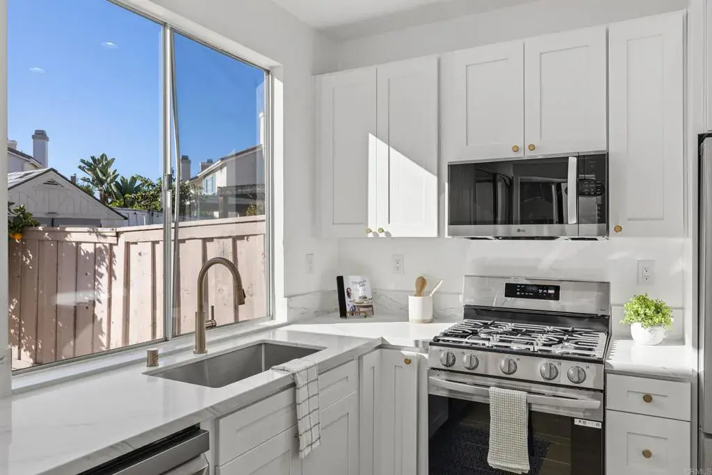 Step into this beautifully remodeled 3-bedroom home in the gated Mesa Cove community, where modern upgrades meet everyday comfort in a prime Mira Mesa location. Fresh and stylish throughout, the home showcases new LVP flooring throughout, sleek quartz countertops and a stunning tiled fireplace that anchors the inviting living space. The redesigned kitchen features brand-new cabinetry, gorgeous new appliances and contemporary finishes perfect for both daily living and entertaining. The bathrooms have been thoughtfully upgraded with new quartz vanities, a new tub and elegant tile surrounds, creating a clean, spa-like feel. The versatile enclosed sunroom adds flexible space for a home office, gym or relaxation area, while the spacious primary suite offers a peaceful retreat. Ideally located next to Mira Mesa Park and within walking distance to Mira Mesa High School, shopping and everyday conveniences, this home also offers quick access to the 15 Freeway and Lake Miramar. With low HOA and a turnkey interior, this move-in-ready home delivers modern living, convenience and community all in one.