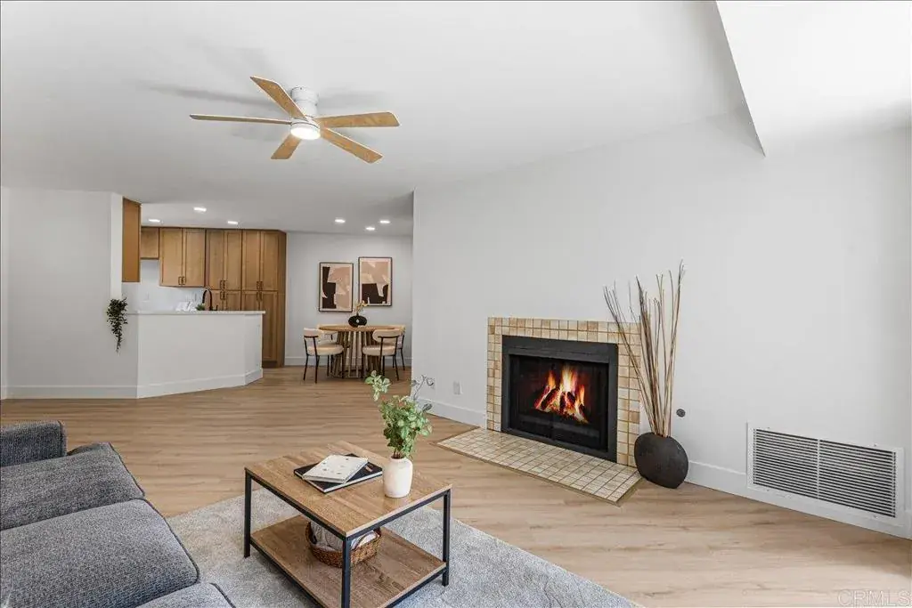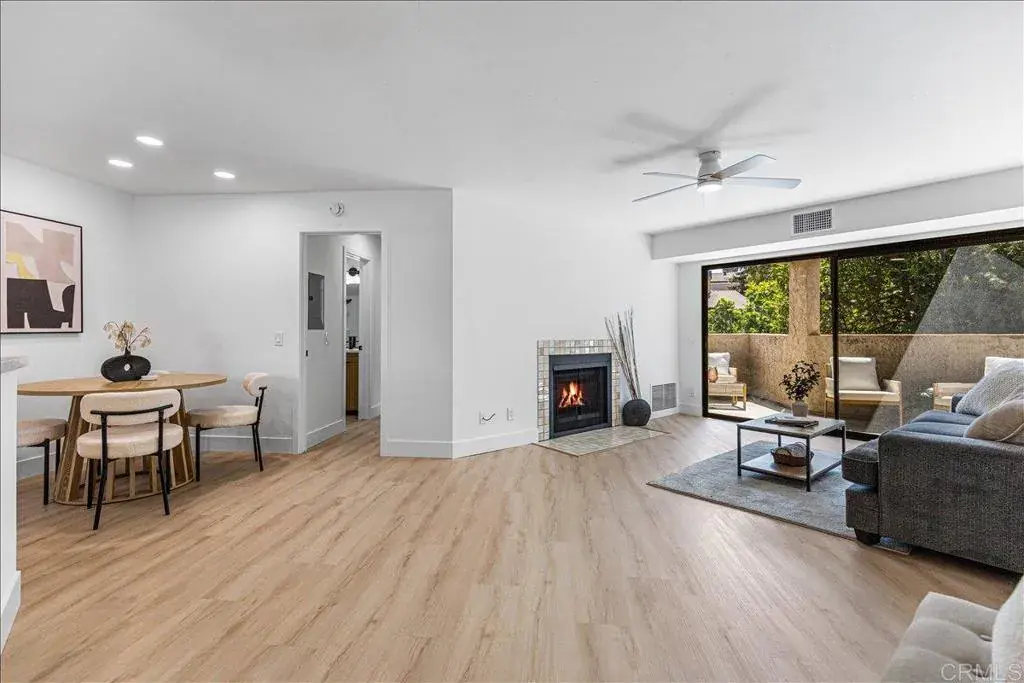 Step into your private oasis in Mira Mesa, conveniently located next to the 15 freeway and Scripps Ranch. Surrounded by koi ponds, mature trees, and tranquil water features, this beautifully renovated top floor Creekside condo blends peaceful living with everyday convenience. Inside, every detail has been thoughtfully updated. The open layout features brand new flooring, fresh interior paint, and a new central AC system for year-round comfort. The inviting living room centers around a cozy fireplace and flows seamlessly to a private patio, perfect for morning coffee or evening relaxation. The kitchen is equipped with brand new appliances, sleek quartz countertops, and generous cabinet space, making both daily meals and entertaining a breeze. The primary suite is spacious and boasts a stylishly updated bathroom. The second bedroom and bath offer flexibility for guests, a home office, or additional living space. Brand new in-unit laundry and two car tandem garage add everyday ease. The Creekside community offers resort-style amenities including a sparkling pool, spa, and peaceful walking paths surrounded by lush landscaping. The location is unbeatable, walking distance to grocery stores, restaurants/bars, coffee shops, parks, and top-rated schools. Convenient freeway access to I-15 and I-805 makes commuting simple, and several major military bases are located nearby. This home is VA-approved and move-in ready, offering a rare opportunity to own a fully updated property in one of Mira Mesa’s most desirable communities. Nothing like this comes to market often. Schedule your tour today and experience the Creekside lifestyle for yourself!!