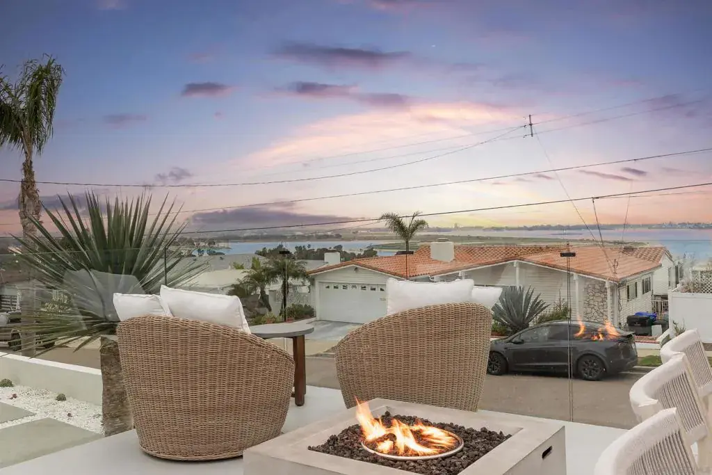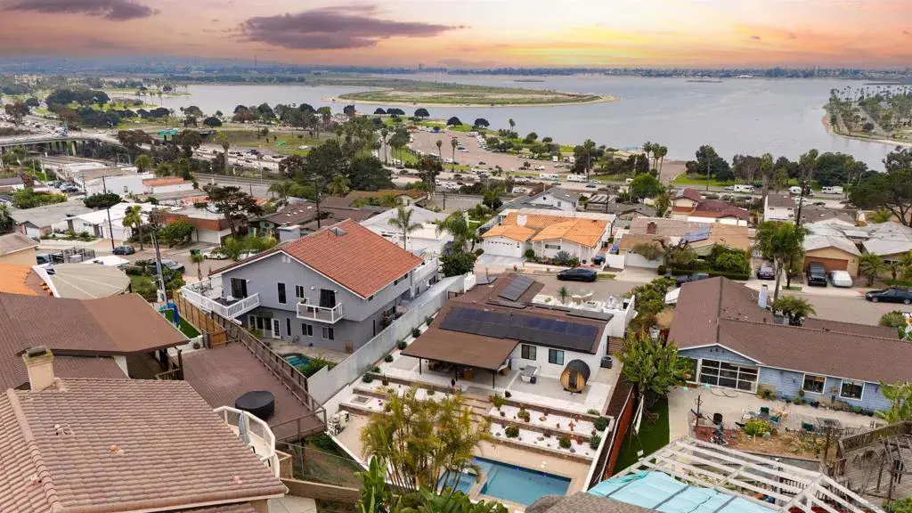 A remarkable Bay Park view home with no expense spared offering a lifestyle of uncompromised luxury. Perched above Mission Bay with sit down panoramic sunset and bay views from your livingroom window, primary bedroom, and rooftop deck. Bask poolside in this completely reimagined resort style yard taking advantage of the year-round sun this coastal climate offers. With a massive 18kW Solar array and 5 Enphase batteries covering the electric pool heaters, EV charging, and more, you can enjoy the amenities year round. The home was fully remodeled down to the studs in with no expense spared including designer finishes, 6-burner gas range, built-in BBQ, wine fridge. The open concept living space opens up to the garage-top deck where you can enjoy peaceful sunset dinners or entertain guests. In this quiet and convenient location you are close to everything Bay Park offers. Walk to the Bay, coffee shops, bars, restaurants and the trolley station where you can take a short ride to Downtown or UTC mall in La Jolla. Central to everything San Diego has to offer. Option to purchase fully furnished and turnkey.