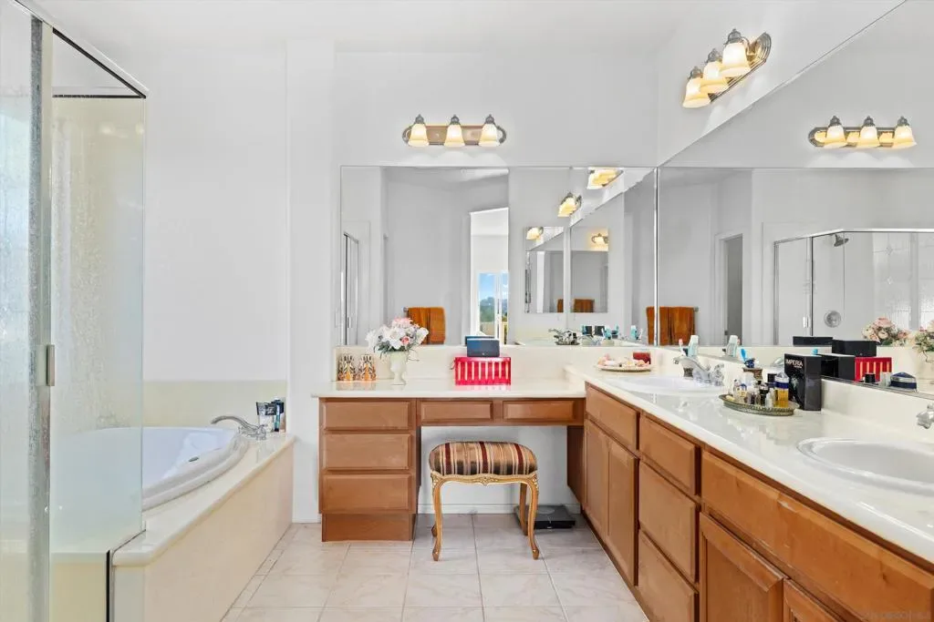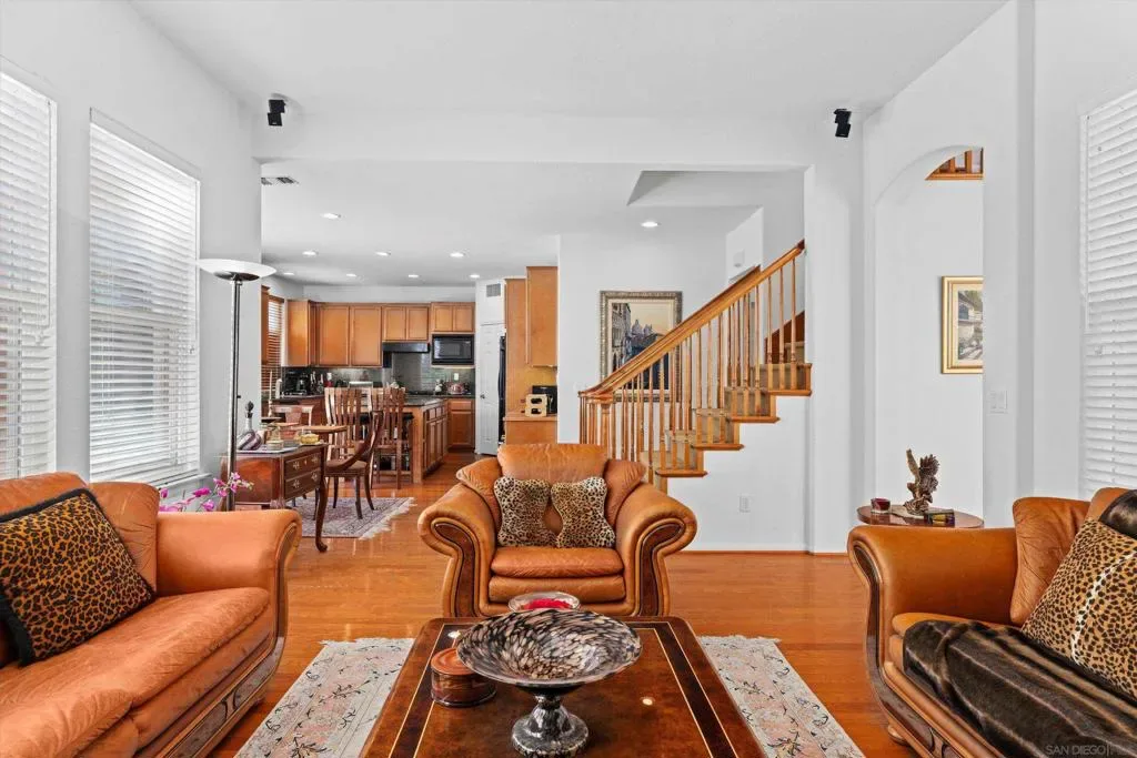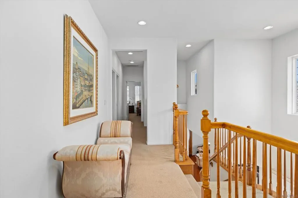 Motivated Seller! Stunning, light-filled 4BR/3BA home in highly desirable Torrey Hills! The main level offers formal living and dining spaces, a spacious family room, and a gourmet kitchen with granite countertops, a center island, maple cabinetry, and a sunny breakfast nook. A flexible downstairs room is ideal for an office or guest suite. Upstairs, the luxurious primary suite features dual walk-in closets, a spa-style bath, and a private balcony. Two additional bedrooms share a Jack-and-Jill bath, complemented by a convenient upstairs laundry room. Two wood-railed staircases provide both privacy and architectural charm, while abundant natural light and a backyard with a built-in spa complete this beautiful home. Bonus: One garage space can easily be converted into a 5th bedroom for added flexibility.