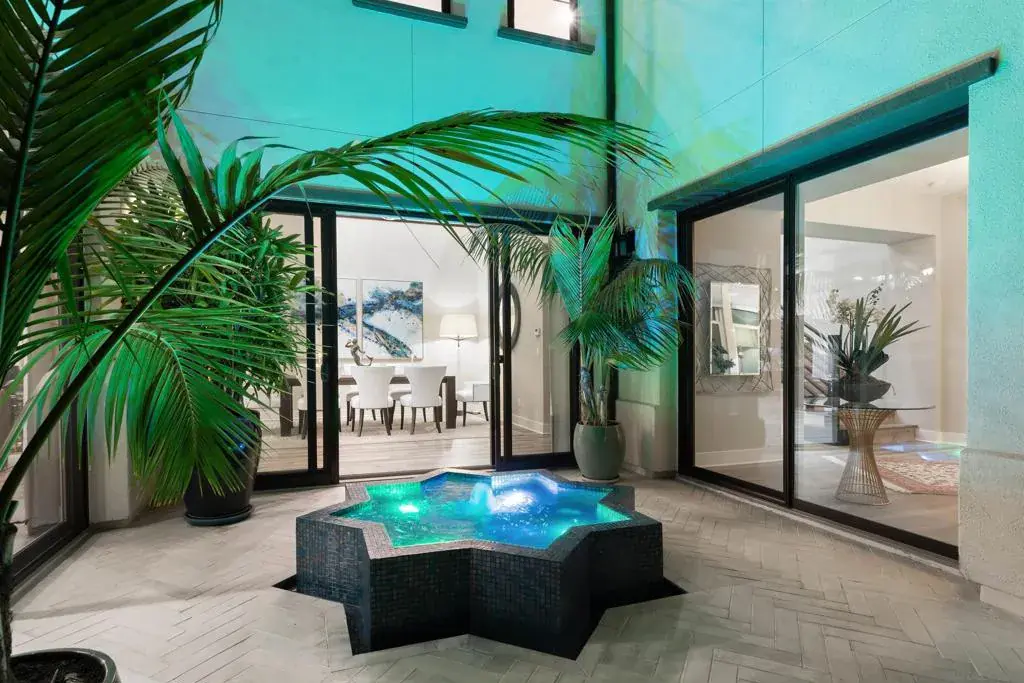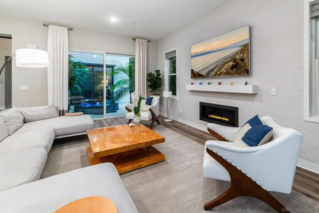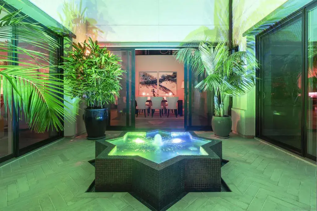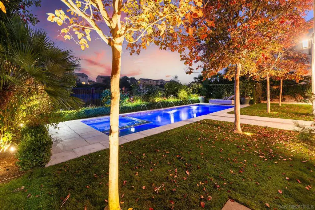 Tucked into the hills of Pacific Highlands Ranch & minutes from the protected coastline of Torrey Pines State Park, this refined residence sits on a large canyon facing lot & was designed as a true year round retreat offering privacy, tranquility & connection to everyday life. Built to global standards of quality & durability, the home is offered fully furnished as a truly turnkey high-end experience. The kitchen anchors daily living w/ custom cabinetry, a spacious island & Thermador & Bosch appliances, opening seamlessly to the living room for effortless flow & entertaining. Integrated smart home automation, Sonos integrated audio visual system, home office & home gym support a modern lifestyle. Protek (sound dampening) Luxury flooring throughout the home w/custom designer porcelain tile in all bathrooms & laundry. Addtl. upgrades include a tankless water heating system paired w/ 2 commercial grade Dime Water whole home water purification systems, RO water purification & Patriot IAQ PCO purification HVAC system. A powder bathroom finished in imported Spanish lava rock adds depth & character. Outdoors, the private courtyard centered around a custom 8 point fountain sets the tone, while water elements create sound, reflection, & calm. The beautiful salt water pool enhances the serene setting, offering quiet mornings overlooking the canyon & evenings spent outdoors as the garden softly illuminates. Perfectly located minutes from shopping & dining at The Village at Pacific Highlands Ranch, One Paseo, & The Del Mar Highlands.