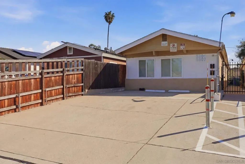 Turn-key Single story Duplex Investment Opportunity! Live in one and rent out the other or rent both! Both units, which are move-in ready, light and bright with exposed wood beams, tile and laminate flooring throughout, modern ceiling fans, updated counter tops, sinks and hardware in kitchens and updated vanities in bathrooms. 2805 is a 3 bed 1 bath. 2807 is 2 bed 1 bath. Each unit includes an off-street tandem parking space and its own electric & gas meter. Generous size backyard which can be shared or can be exclusive to the back unit with patio area and green lawn or space for possible future addition of ADU. This property is situated on a quiet cul de sac street among the rolling hills/canyons of San Diego with urban hiking trails nearby and one of the coolest urban nurseries in San Diego! Easy freeway access in a central location just minutes to Downtown, the airport, parks, shopping and dining!