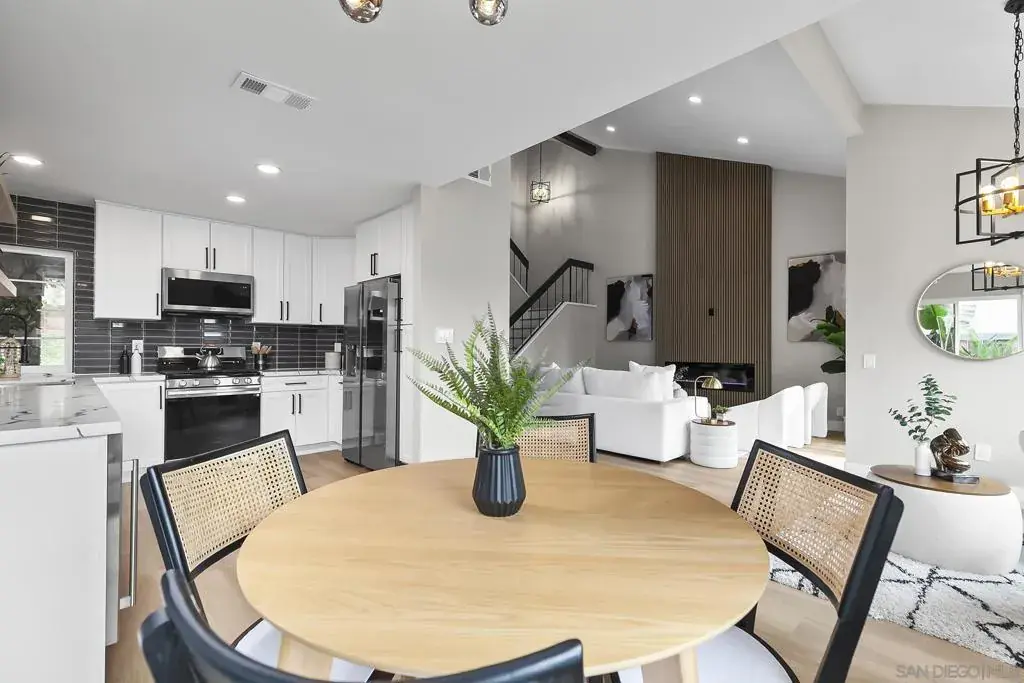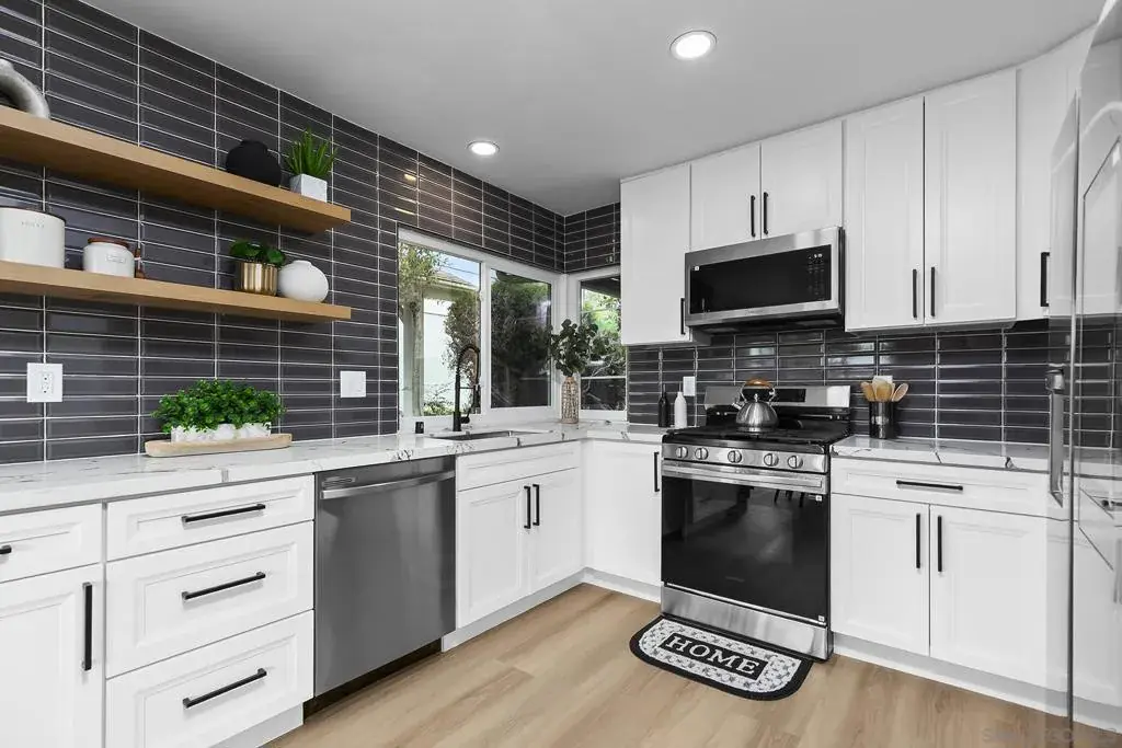 This impeccable beauty is one not to be missed. The recent remodeling updates let you enjoy a fresh and stylish turnkey space! The home has just undergone a stunning remodel featuring all new flooring, new lighting throughout, new appliances, new mirrored closets in bdrm’s, new dual pane vinyl windows, new water heater, new garage door, brand new roof, installed new HVAC w/heating & A/C & all new landscaping in back making it totally move-in ready! This home offers tons of natural light, with windows everywhere, creating a warm & inviting atmosphere with an open-concept floor plan featuring high vaulted ceilings with a floor to ceiling acoustic wood wall design fireplace. All baths & kitchen feature new cabinets, quartz countertop and seamless glass shower doors. Direct access to your 2-car garage and a fully fenced backyard. Bonus: no homes across the street & a cul-de-sac at both ends. Just 1.7 miles from Mission Bay, easily enjoy water activities, parks, & scenic walks along the shoreline. Plus, with San Diego’s vibrant Downtown, historic Old Town, & Sea World nearby, there’s always something fun to do. Easy access to Public transportation & Trolley.
