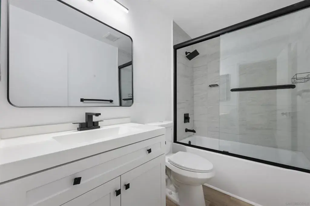 Welcome to this beautifully fully renovated 2-bedroom, 2-bath condo located in the highly desirable Clairemont neighborhood of San Diego. Offering 1,052 sq ft of thoughtfully updated living space, this move-in-ready home features washer and dryer hookups, brand-new flooring with fresh interior paint throughout. Modern Slim Shaker cabinets with sleek hardware compliment durable quartz countertops, and stainless steel appliances creating a clean, uncluttered design. Each bathroom has been tastefully remodeled with new vanities, light fixtures, updated shower, bathtub, and stylish tile finishes. Additional upgrades include new ceiling fans and modern light fixtures, enhancing comfort and functionality in every room. Conveniently located near shopping, dining, freeways, and beaches, this turnkey condo is an excellent opportunity to enjoy stylish living in a central San Diego location. Gated community!!!