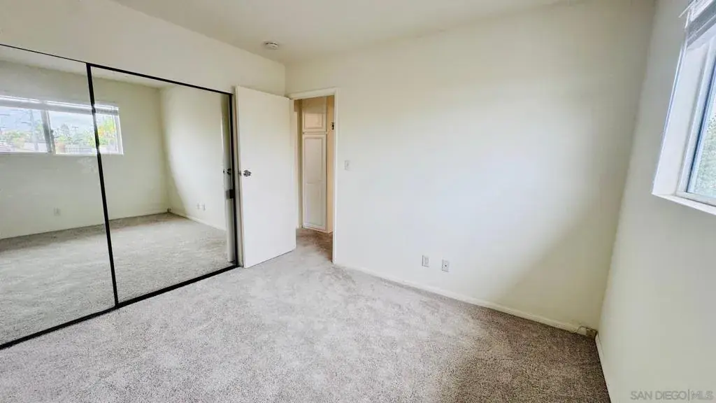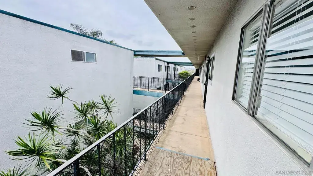 Move-in ready top-floor end unit with 2 bedrooms and 1.5 baths, featuring a private view balcony. This bright and open floor plan boasts luxury vinyl plank flooring, new carpeting, freshly painted interiors, a ceiling fan, mirrored closet doors, and upscale bathrooms. The main bathroom includes a tub/shower combo, and there’s a convenient half bath off the living room for guests. Enjoy an assigned parking space with easy access to the unit via stairs or elevator. Low HOA dues cover water! Just one block from the popular Clairemont Town Square with its many shops and restaurants, and minutes from Mission Bay and La Jolla beaches. Perfect for an investor