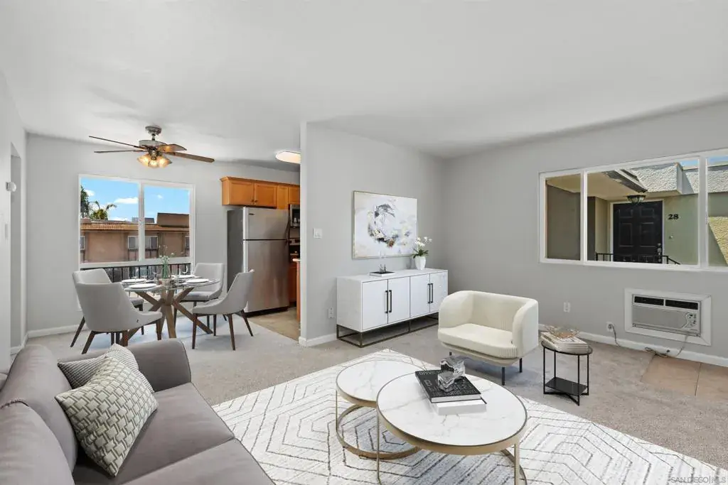 Home For Sale Amazing Location! 6666 Beadnell #15 San Diego CA 92117. This charming Clairemont Mesa 1-bedroom, 1-bath condo offers 625 sq. ft. of comfortable living in a prime, central location, listed at $359,900. Freshly painted with brand-new carpet, the home is filled with natural light and features a spacious bedroom with floor-to-ceiling mirrored closet doors and a updated tiled tub enclosure in bathroom. The kitchen boasts stainless steel appliances—including a brand-new range- brand new dishwasher—with ample granite counter space and generous cabinet storage. Enjoy the benefits of newer double-pane windows that keep the home quiet and energy efficient. Onsite Laundry room in complex. VA approved and FHA loans may get a spot approval. With tandem parking for 2 cars in space #38 just minutes from freeways, shopping, and dining, this condo combines convenience with comfort. Move-in ready and perfectly situated, it’s an ideal choice for a first home, downsizing, or investment. Note: 2 of the photos are virtually staged bedroom and living room. Come buy this home today!
