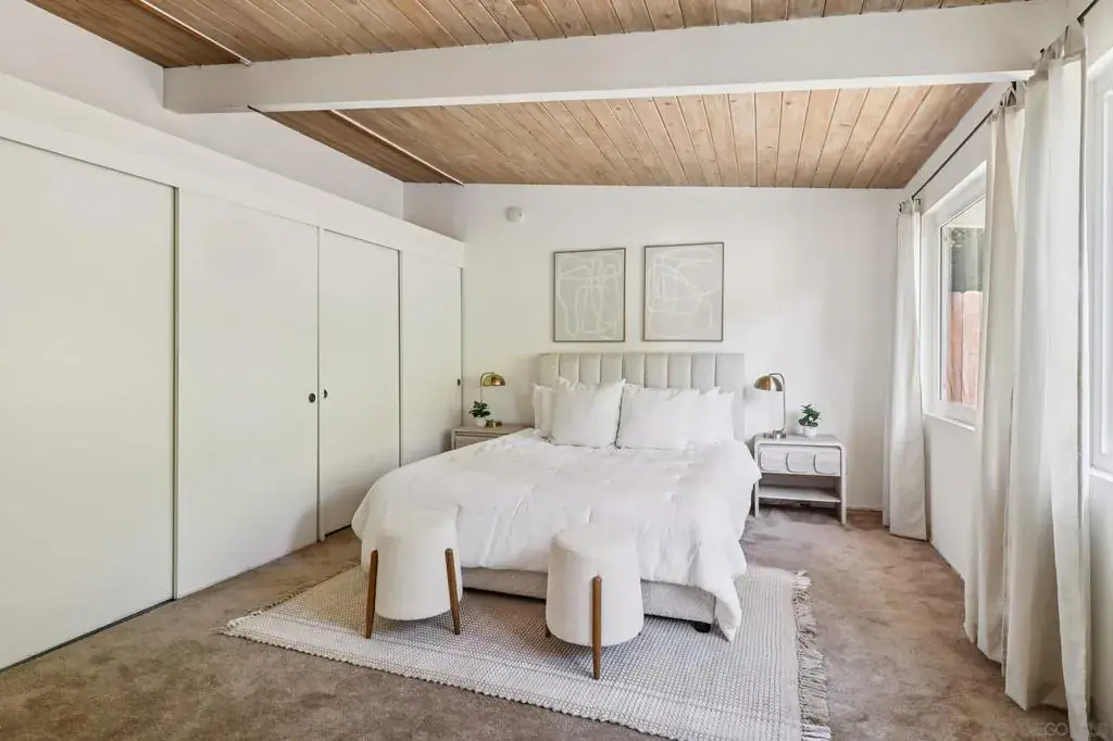 Is Mid-Century Modern a real thing? Absolutely—and this home embodies it beautifully. Tucked into the highly sought-after Del Cerro neighborhood, this ranch-style gem showcases exposed beams, striking wood-clad vaulted ceilings, and all the architectural character you’d expect from the era. Sitting on an expansive 11,800 sq ft lot, the property offers room for an RV, space for your own vegetable garden, and a usable perch at the top of the slope where you can relax and take in the views. And still have space to build an ADU. Located at the end of a quiet cul-de-sac, the home is just steps from Del Cerro Park, where you’ll find tennis courts, walking trails, a community pool, and even an open lot perfect for guest parking when you’re hosting those big gatherings. Only a 7 minute drive to SDSU, Lake Murray & Patrick Henry High school.