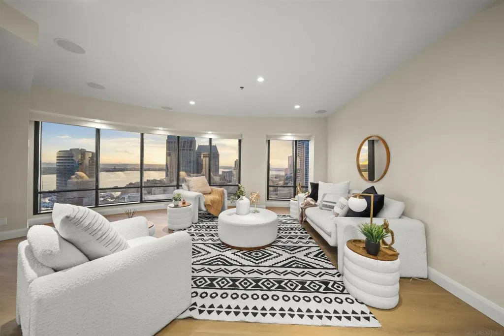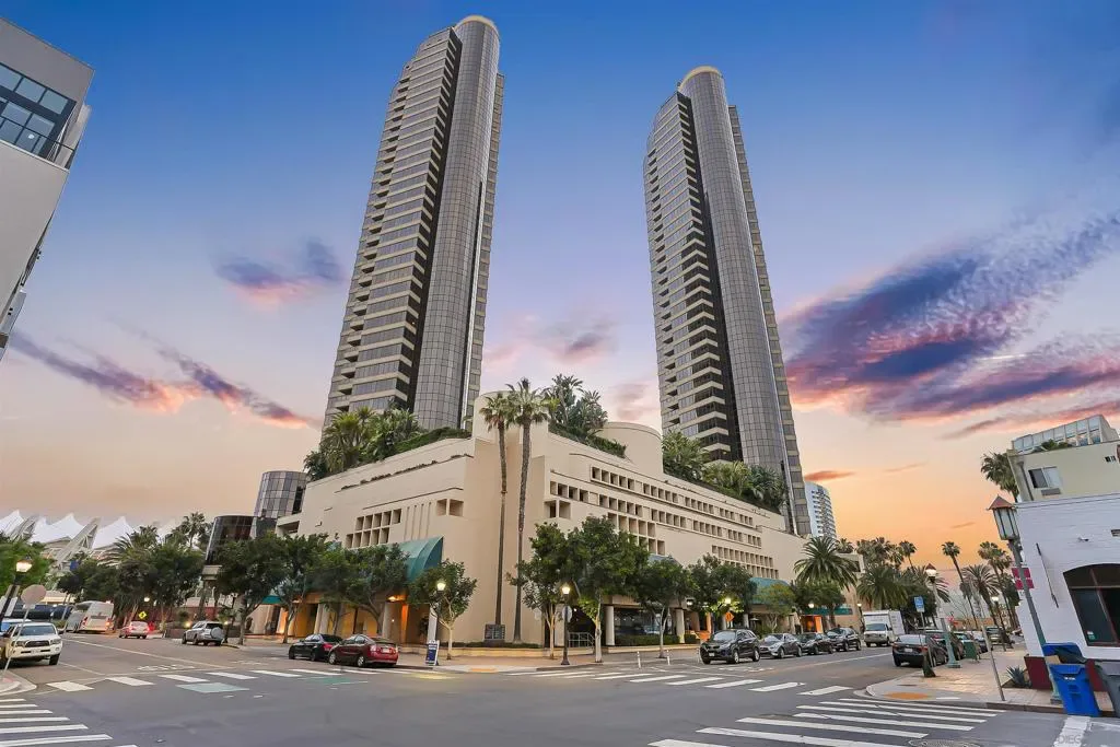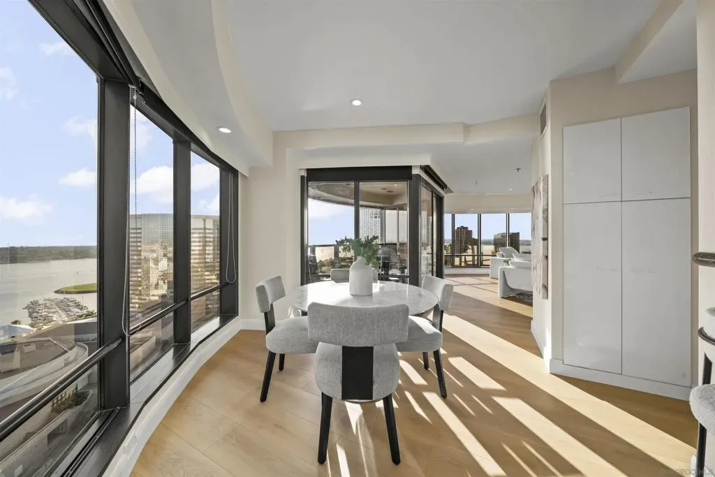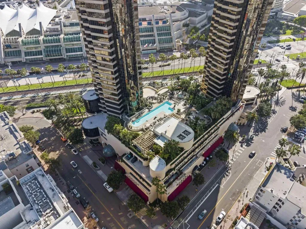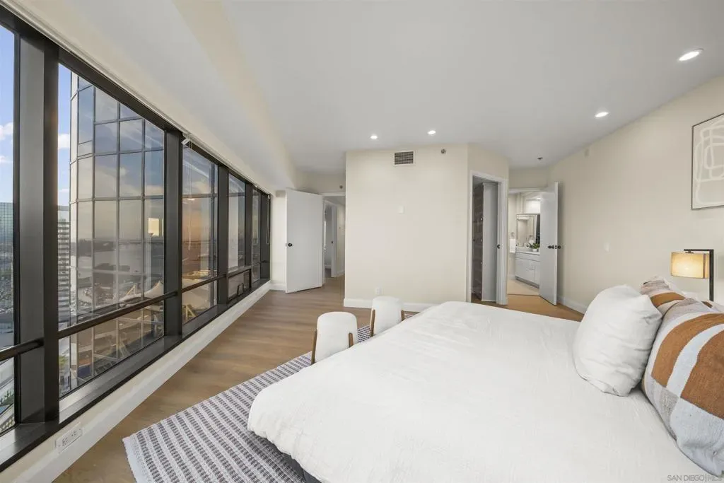 Welcome to Harbor Club Residence 2405, featuring the iconic “bubble” floor plan and positioned high on the 24th floor. This 2-bedroom, 2-bath residence offers breathtaking, unobstructed views from every room, spanning the bay, Coronado, the Coronado Bridge, and the Downtown skyline. Set on the true front row of Downtown’s waterfront, this residence offers one of the closest possible positions to the bay, with no residential development permitted south of Harbor Drive. The signature curved “bubble” layout maximizes glass and view exposure, creating a bright, dramatic living experience throughout. The home has just been refreshed with new flooring, fresh paint, and a new dishwasher, along with additional upgrades completed over the years. The spacious primary suite features a custom walk-in closet, while both bedrooms enjoy incredible panoramic views. An exclusive-use EV charger was also installed at the unit’s parking spaces. Harbor Club has long been one of Downtown’s most desirable addresses, known for its prime location and protected, unobstructed views. Residents enjoy a full-service luxury lifestyle with amenities that include a rooftop pool and spa, clubhouse, fitness center, sauna, 24-hour concierge and doorman, and a private library and meeting space. A rare opportunity to own one of Harbor Club’s most sought-after floor plans in a premier waterfront setting.