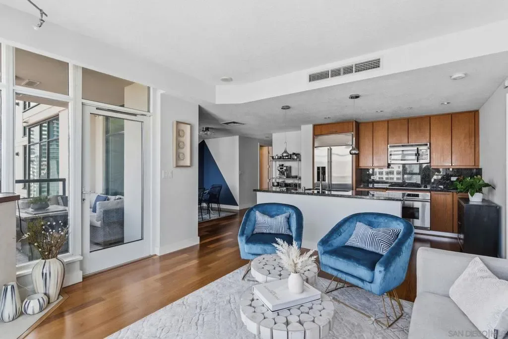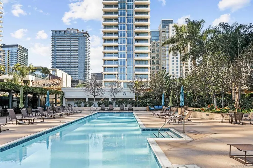 Perched high on the 29th floor of The Grande South, Residence 2903 showcases breathtaking panoramic views of the bay, city skyline, and beyond through expansive floor-to-ceiling windows. This highly coveted floor plan offers a seamless blend of comfort and sophistication, featuring a spacious private terrace ideal for taking in San Diego’s iconic sunsets and vibrant waterfront energy. Located in one of Downtown’s most desirable pockets, you’re just moments from the waterfront, the charm of Little Italy, and an array of acclaimed dining and lifestyle destinations. A beautifully landscaped promenade just outside the building connects you effortlessly to it all. Residents of The Grande South enjoy a full suite of resort-style amenities, including a heated pool and spa, sauna and steam room, fitness center, clubhouse, guest suites, and secure guest parking. With 24-hour concierge and security, along with thoughtful services like dry-cleaning pickup and delivery, this is elevated high-rise living at its finest.