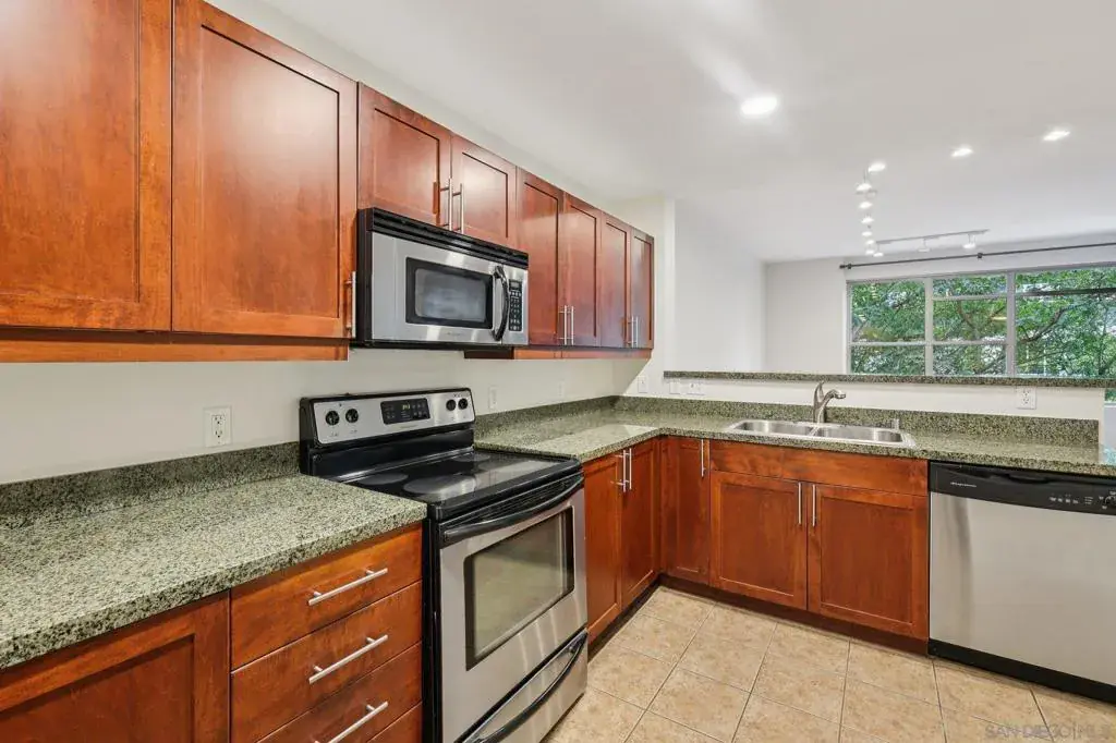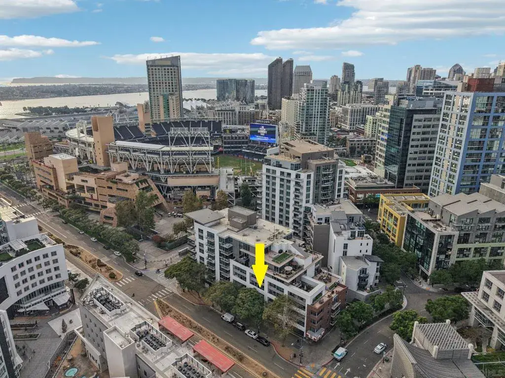 SELLER MAY CONSIDER A CREDIT TOWARDS 1 YEAR HOA DUES!! Experience the vibrant energy of East Village in this spacious 1-bedroom, 1-bath residence just steps from Petco Park, top dining, nightlife, and the scenic waterfront. The open living, dining, and kitchen layout is perfect for entertaining, flowing seamlessly to a large covered balcony with tranquil treetop views—ideal for morning coffee or evening unwinding. The chef-inspired kitchen boasts granite counters, abundant cabinetry, breakfast bar seating, and stainless steel appliances. Retreat to the king-sized bedroom, complemented by a roomy bath and excellent storage. Added conveniences include in-unit laundry, a dedicated storage unit, and secure parking. Residents enjoy premium amenities such as a BBQ deck, fitness center, and community room. With easy access to the Gaslamp Quarter, Seaport Village, Little Italy, and nearby beaches, plus close proximity to the trolley, train, and airport, this home offers the ultimate in urban living and convenience.
