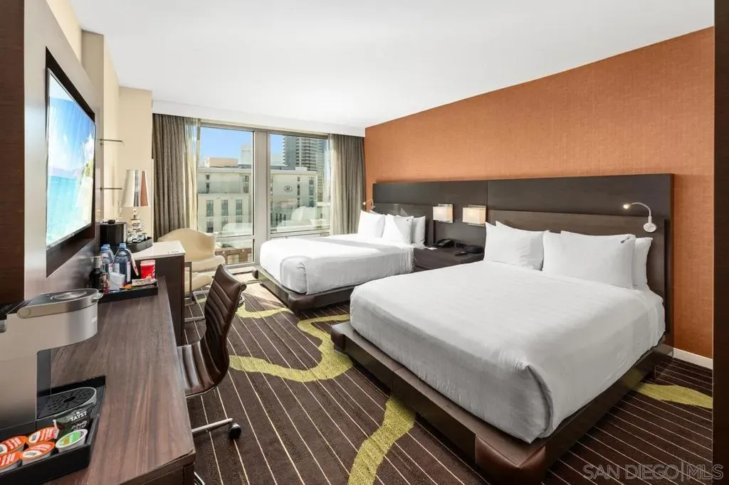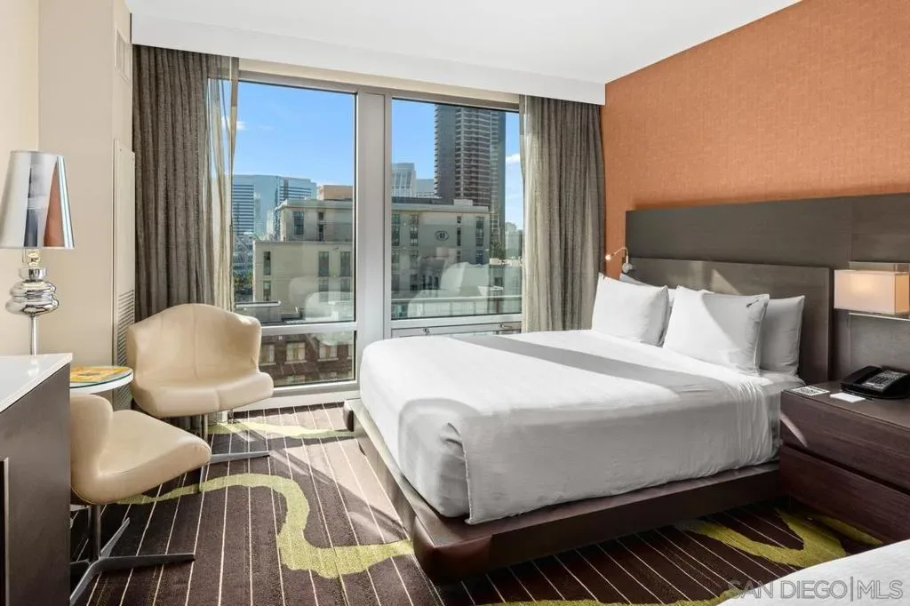 Own a piece of the spotlight at the iconic Hard Rock Hotel San Diego! This “Rockstar” suite offers a premier fee-simple investment in the heart of the Gaslamp Quarter, steps from Petco Park and the Convention Center. This high-design unit features the signature “Sleep Like a Rock” bedding, a spa-inspired bathroom with a Hansgrohe rainfall shower, and floor-to-ceiling windows with urban views. Ownership includes “Rock Royalty” VIP status: front-of-line access to FLOAT rooftop bar and 207, priority seating at Nobu, and access to the exclusive VIP lounge. Owners enjoy a hands-off investment with professional hotel management handling all bookings and maintenance. Experience the ultimate blend of luxury, entertainment, and urban convenience!