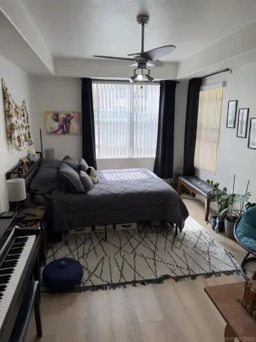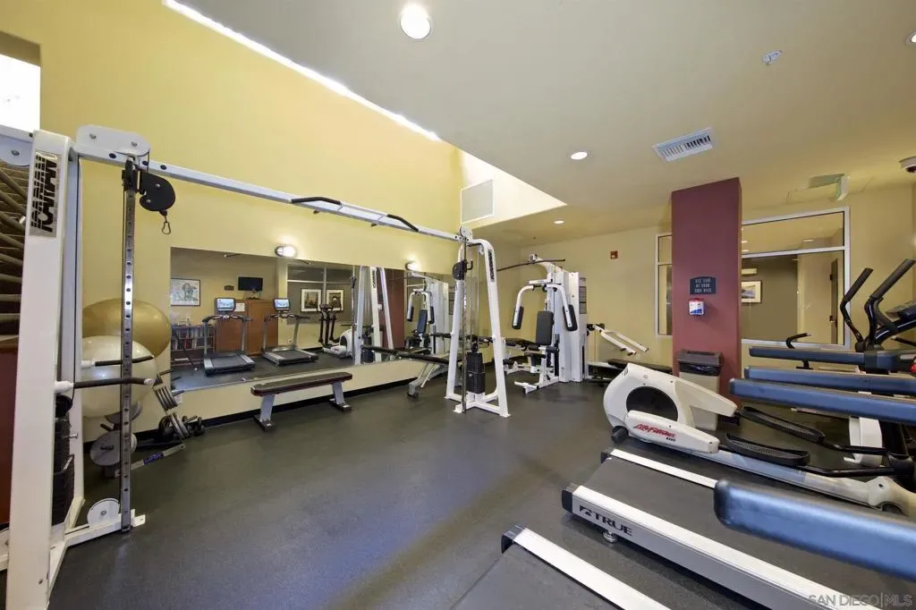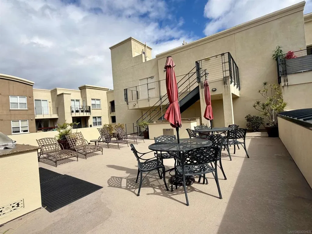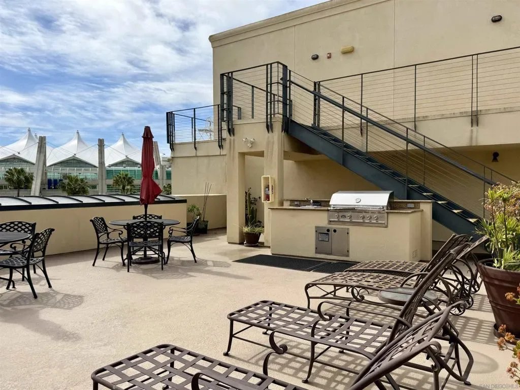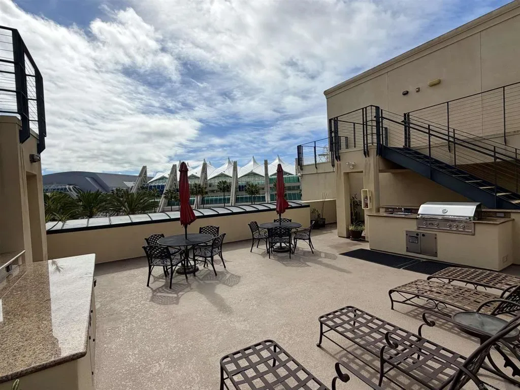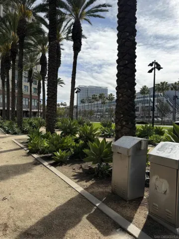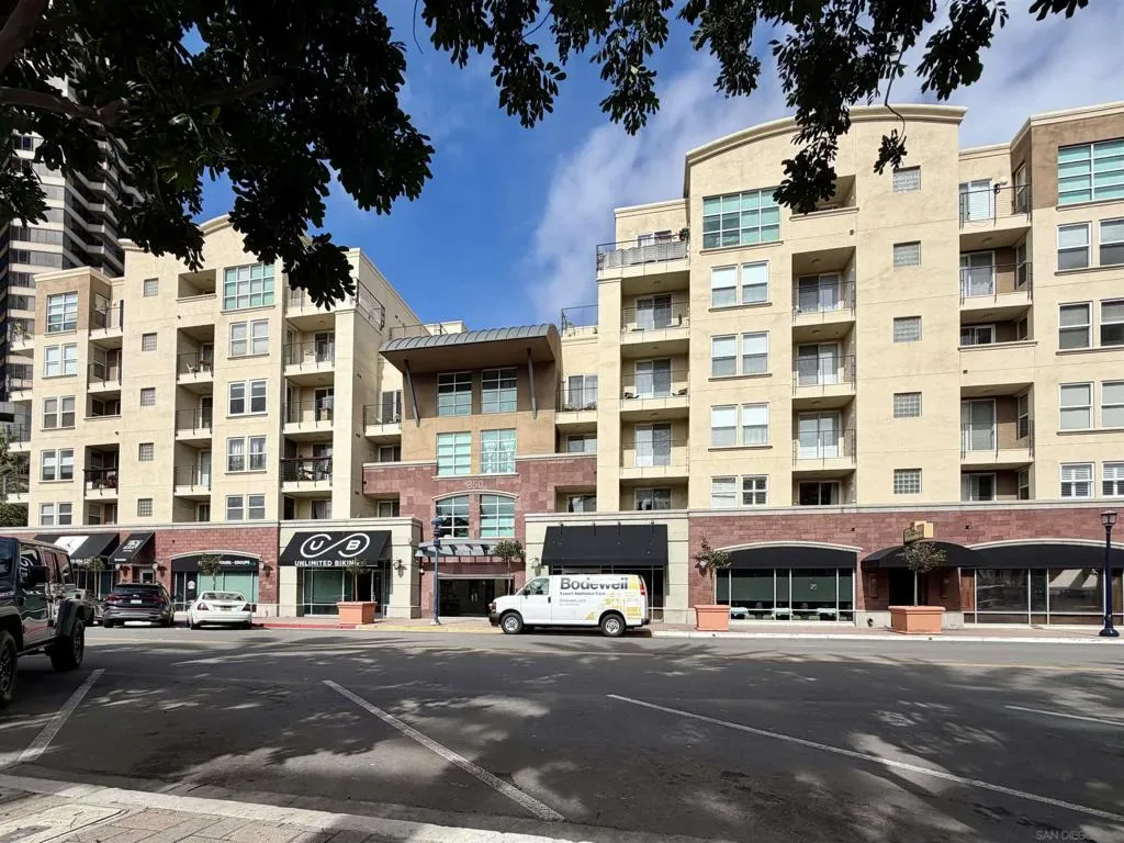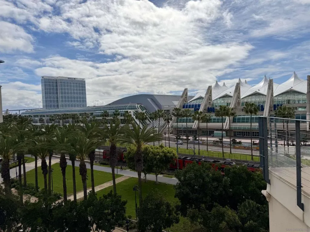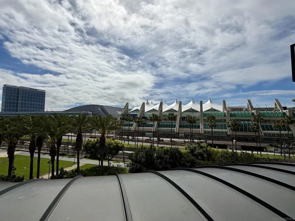 Experience luxury urban living in San Diego’s prestigious Marina District, directly across from the Convention Center. Gorgeous, bright, & remarkably quiet 2-BR, 2-bath offers a thoughtfully designed open floor plan ideal for modern living & entertaining. Spacious primary suite features a beautifully tiled flooring, & a generous walk-in closet. Wide-plank flooring, stainless steel appliances, granite countertops, & abundant cabinetry enhance the well-appointed kitchen. Oversized windows fill the home with natural light, while the private balcony, with its own storage closet, offers a pleasant outlook & seamless indoor-outdoor living. Additional highlights include central heating & brand-new air conditioning, ceiling fans, stacked washer & dryer, & two assigned parking spaces in a secure garage. Residents enjoy resort-style amenities including, fully equipped fitness center, landscaped courtyard, community & game room, meeting room, rooftop lounge with BBQ area & impressive city views. The electronically secured building features controlled access, two elevators, stairwells, & a conveniently located trash chute. HOA dues include water, sewer, trash, common area maintenance, & high-speed Google Fiber internet, creating a truly turnkey downtown lifestyle opportunity. Step outside & enjoy the best of downtown San Diego, Petco Park, Gaslamp Quarter, waterfront, Seaport Village, Trolley Station, Rady Shell at Jacobs Park, & countless restaurants, entertainment venues are all just minutes away. Balboa Park, San Diego Zoo, beaches, & medical centers are accessible.