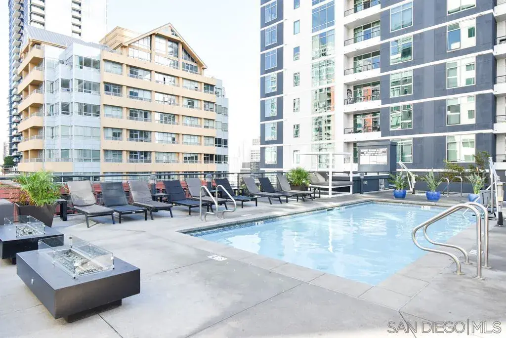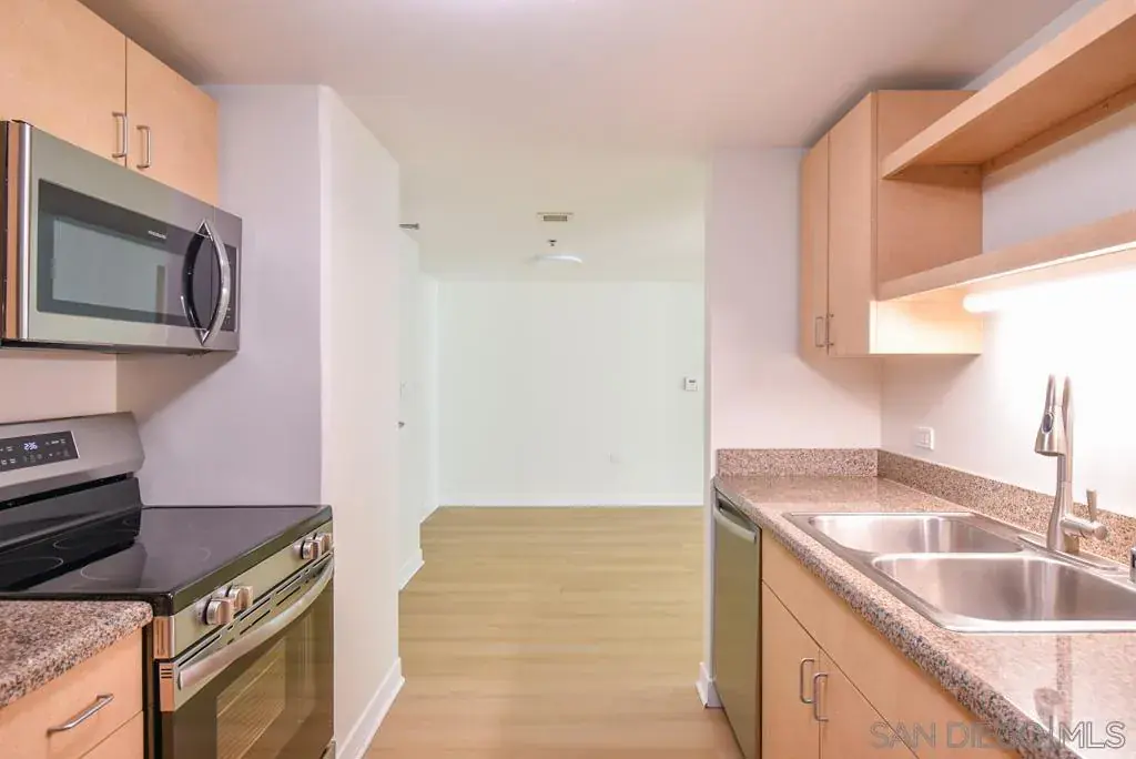 2 Bedroom, 2 Bath condo in a beautiful high-rise building. Building is located in the heart of Little Italy and only a few blocks to San Diego Bay. New waterproof hardwood laminate flooring (LVP) installed throughout the home. Brand new matching stainless steel appliances just installed in the kitchen as well. Floor to ceiling windows in both bedrooms that let in tons of natural light. Spacious living room area that combines with the dining area. Stackable washer/dryer in excellent condition. Large master bedroom includes a balcony area. Entire condo has been painted, cleaned and ready to move-in! Building features include a large fitness room with treadmills, weights and work-out machines. A beautiful pool and spa is located on the 8th floor between the two high-rise towers. Next to the pool is a BBQ and outdoor dining area. 24-hour manned front desk to welcome guests, ensure security and secure packages. 1 parking space included which is a valet space. A parking attendant will park and retrieve your car for you at no extra charge beyond the normal HOA monthly fee (valet is mandatory to ensure no parking damage occurs). Trolley and freeway access are only blocks away. This is a Class A building in a highly desirable area!
