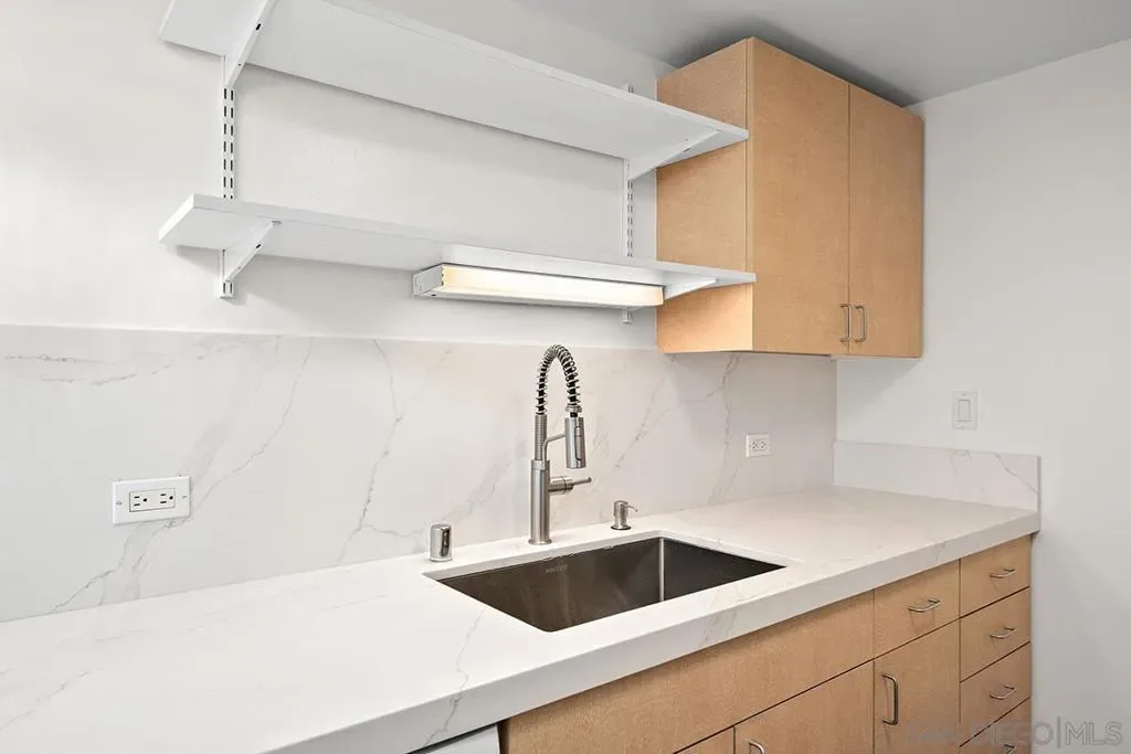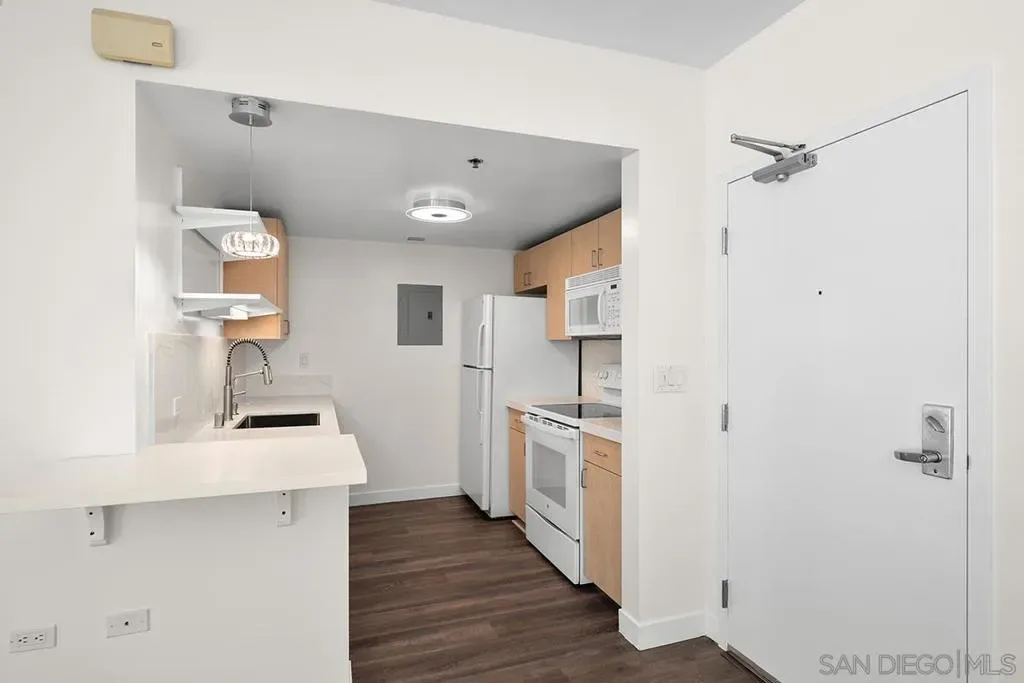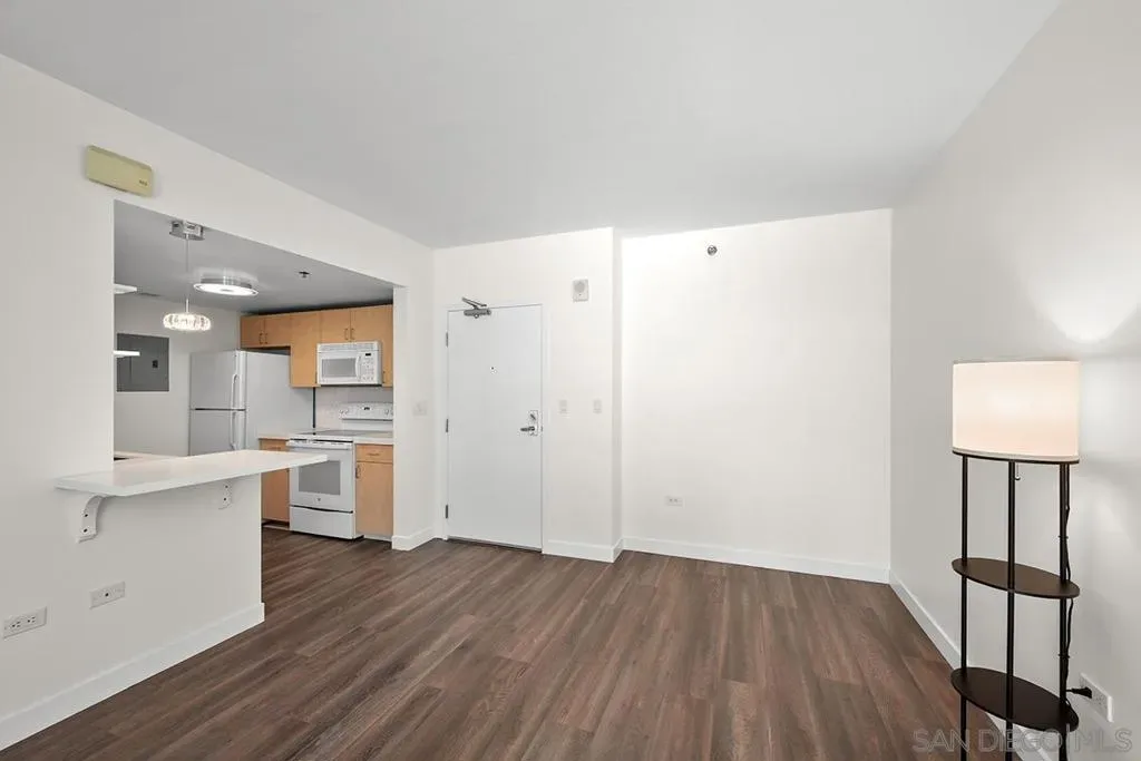 Feast your eyes on this immaculate residence in vibrant Little Italy, one of San Diego’s most spirited neighborhoods. Recently upgraded, this contemporary condo boasts luxury viny plank flooring, neutral color palette, and a private balcony to catch the breezes and city view! You will surely enjoy cooking in the pristine kitchen with sleek quartz countertops, a custom extended bar well-suited for entertaining, a Mayeser single-basin undermount sink, and a Kohler Ringby faucet. The spacious bedroom offers ample closet space, with the adjoining bathroom featuring a granite vanity with tub-shower combination. Perfect for a first-time buyer or investor looking for a sharp, well-appointed condo in popular Little Italy. Downtown San Diego’s Little Italy is a vibrant culinary and cultural hotspot, beloved for its rich history and modern flairs. Classic restaurants like Mona Lisa and Civico 1845, alongside new favorites Ironside, Juniper & Ivy, and Craft & Commerce, make it a go-to for local foodies. The neighborhood is filled with cafes, bakeries, boutiques, bars, and wine shops, perfect for an evening wander. The Little Italy Association also keeps the calendar full with community events such as art walks, car shows, the yearly Little Italy Festa, and a vibrant Farmers Market on Wednesdays and Saturdays. Don’t forget the NoLi Art & Design District, a vibrant hub that includes a collection of retail outlets, designer boutiques, and art galleries, all boasting unique home items and rare discoveries to help you curate the perfect ambiance for your new residence. Acqua Vista features complimentary valet parking for residents, 24/7 security and lobby attendants, a fitness center, and an 8th floor pool and spa deck, barbecues and lounge area. Residents can also take advantage of the community’s electric vehicle charging stations. *Have a 2nd vehicle? The HOA leases additional parking spaces too!*