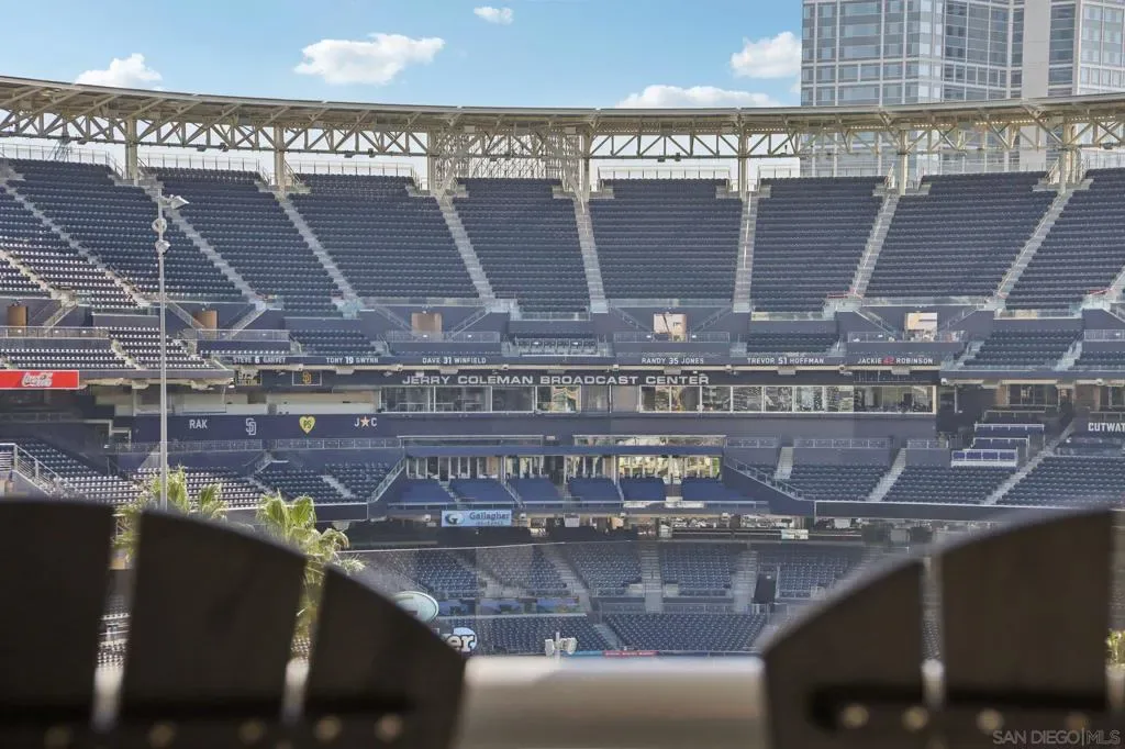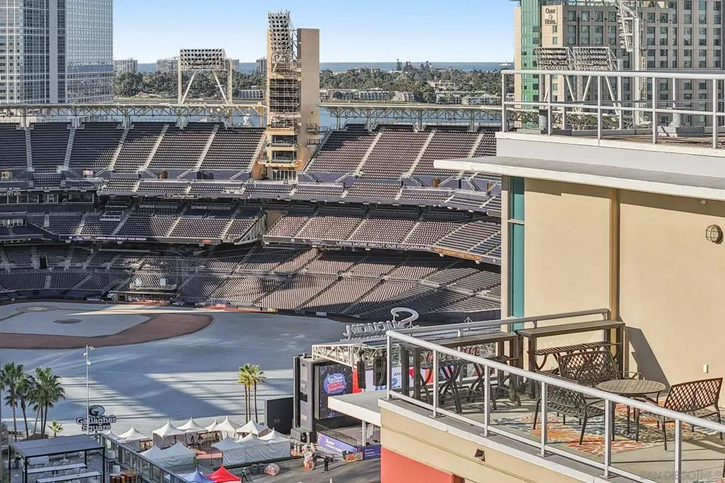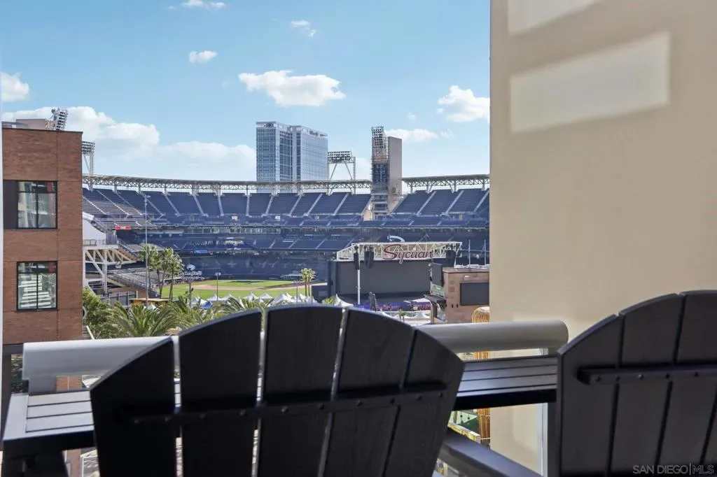 Step into a bright and inviting 1-bed, 1-bath condo in Diamond Terrace, one of East Village’s most vibrant addresses. Floor-to-ceiling windows fill the home with natural light and frame views of the city, while the private balcony overlooks Petco Park, offering a front-row seat to the energy of the ballpark. Imagine enjoying morning coffee above the neighborhood or unwinding in the evening as the stadium lights glow and the sounds of the city drift below. Inside, the open living space flows into a kitchen with stone countertops and stainless steel appliances, with in-unit laundry and central air adding everyday comfort and convenience. Enjoy a spacious primary suite with access to the oversized bath from both the bedroom and living area. Diamond Terrace rises 14 stories with 113 residences and offers a secure lobby, underground parking, a fitness center, and a top-floor community room with an outdoor terrace and BBQ area, perfect for relaxing or gathering with friends while taking in sweeping views of the skyline. Located just steps from Petco Park, Gallagher Square, the Gaslamp Quarter, and countless restaurants, cafes, and nightlife options, this home places you in the heart of downtown San Diego. More than just a condo, it offers a lifestyle where ballgames, concerts, dining, and city life are all part of the everyday experience.