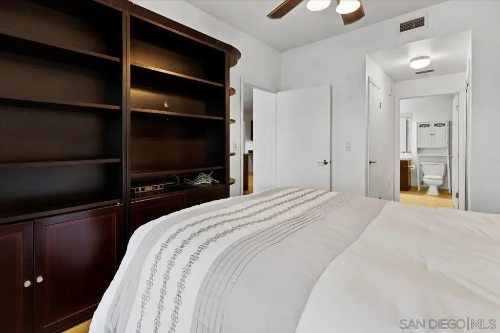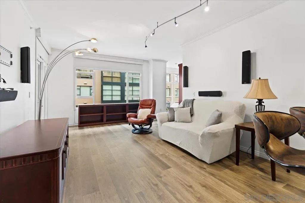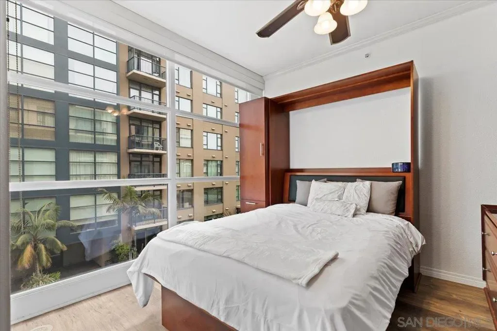 Nestled in the heart of the vibrant Gaslamp Quarter, this sophisticated 1-bedroom, 1-bath plus extra bonus area within the sought after Trellis building, offers an exceptional blend of style and convenience. The expansive kitchen boasts sleek granite countertops, stainless steel appliances, ample cabinetry and a generous walk-in pantry with built-in shelving—perfect for culinary enthusiasts. Flowing seamlessly into the sunlit living room, oversized windows bathe the space in natural light, while a charming balcony invites you to unwind and soak in the dynamic cityscape. The versatile bonus area offers endless possibilities, whether as a home office, yoga retreat or guest nook. The spacious bedroom, overlooking the private balcony, features custom-built closet organization and blackout blinds for ultimate tranquility. A stackable in-unit washer and dryer and a dedicated underground parking space complete the home’s practical luxuries. Trellis elevates urban living with an array of premium amenities, including secured access to the building and elevators, a serene open-air atrium with a cascading fountain, a refined lobby with a mailbox area and 24-hour parcel lockers, a state-of-the-art fitness center, and a second-floor courtyard with gas grills—ideal for entertaining. With on-site security ensuring peace of mind, this sought-after community is mere steps from iconic landmark dining destinations, Petco Park, premier shopping, the convention center, and effortless trolley and freeway access. VA and FHA approved building!