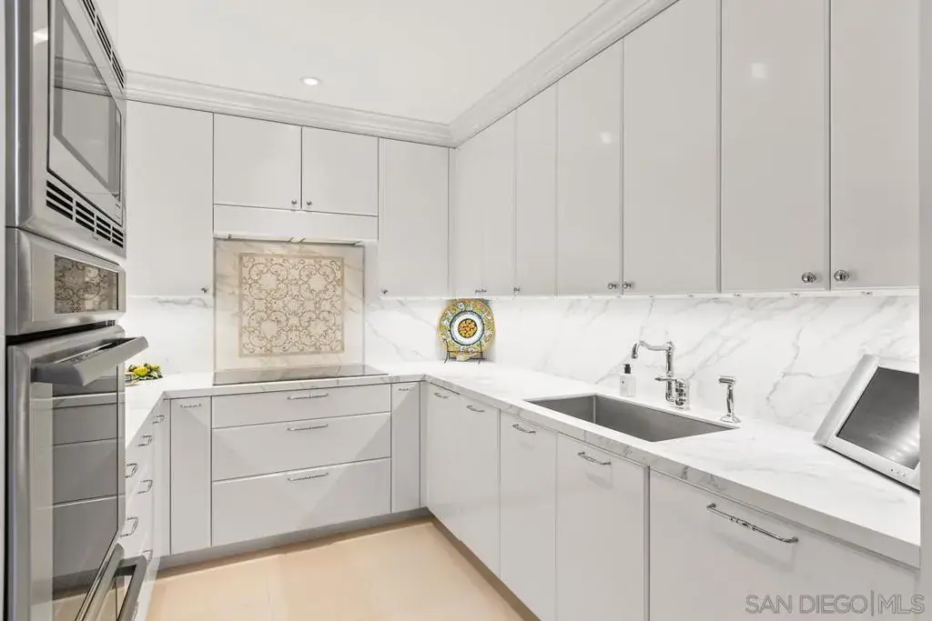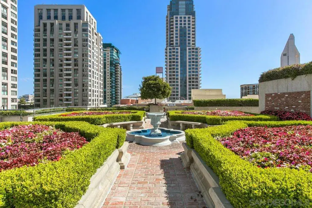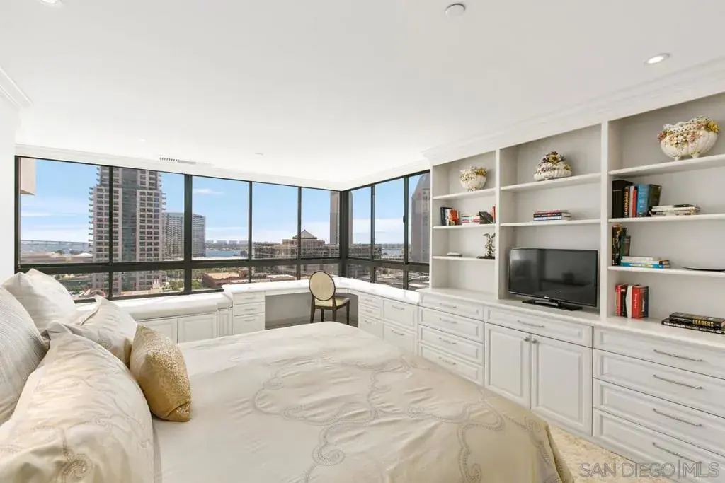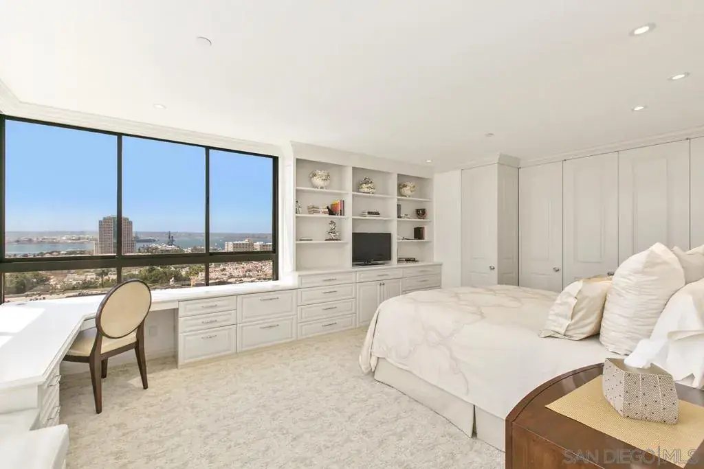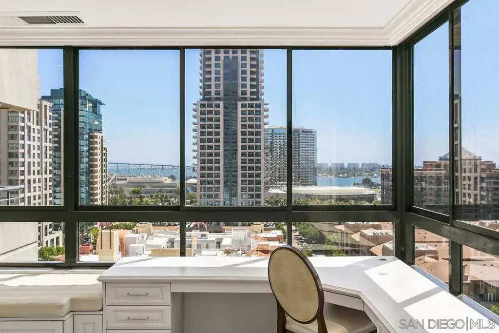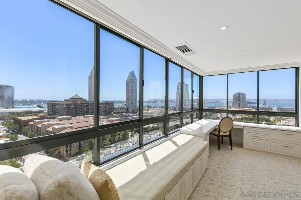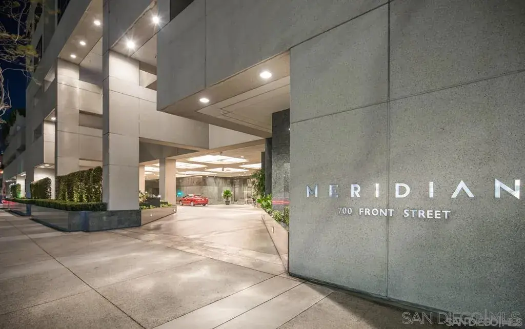 Welcome to MERIDIAN Condominiums 1004…Imagine a life where luxury is a lifestyle beyond expectations, convenience, elegant service and style. Stunning panoramic views of the exciting city, sparkling active bay and Pacific Ocean sweeping from Mexico to Point Loma can be enjoyed all year round. Completely remodeled in recent years by master craftsmen and expertly designed by noted interior designer Gretchen Kennelly, classic sophistication reigns in this beautifully crafted, inviting home. High-end designer finishes and top-of-the-line Thermador and SubZero appliances, Rohl, Hansgrohe, American Standard, and more complement the exceptional custom built-in storage and detailed features. Experience the refreshing breezes with wide-opening sliding doors and seamless access to the viewing balcony. Wrap-around windows in the primary bedroom frame the exceptional views with rejuvenating breezes. Don’t miss this rarefied opportunity. Complete with designer furnishings. MERIDIAN CONDOMINIUMS, a landmark residential community deliberately conceived and impeccably crafted, remains without peer. Incomparable services are offered by an attentive staff consisting of 24 hour Parking Attendants for Residents and their Guests, Door Person, Porter, Concierge and more. A completely separate service entry with loading dock and service elevator is staffed with Porters to accept packages, deliveries and tradespeople. For your convenience, groceries, packages, dry cleaning, luggage and more can be delivered to your door! Impeccably maintained, pride of ownership abounds. Whether you are entertaining on a grand scale or merely relaxing by the sparkling pool, MERIDIAN’s accommodations are sure to exceed your expectations. Greeted by a sophisticated private art gallery, the plaza level boasts limitless accommodations to guests and residents alike. The MERIDIAN Room, designed with a catering kitchen, bar, cloakroom, and restrooms offers an elegant entertaining environment for both large-scale and intimate parties. Elegant formal gardens, a grove of citrus trees, an outdoor spa, and an adjoining fire pit complement the inviting pool and lounging/sunning areas on the unique 2/3 of an acre outdoor plaza elevated above the cityscape. Other features adding to the convenience and comfort at MERIDIAN include two resort-caliber spa and fitness facilities, five lovely Guest Suites to welcome visiting friends and family, and a Conference Room ideal for business meetings and presentations or small-scale entertaining. At the foot of MERIDIAN lies MERIDIAN PLACE, offering a myriad of fine retailers to conveniently complete the needs of your lifestyle. Salon and spa services, cosmetic dentistry, dry cleaning, fine dining, and much more are literally an elevator ride away. Take advantage of MERIDIAN’s premier downtown location and explore the countless restaurants, cultural attractions, and miles of scenic pathways. Enjoy a lifestyle that is without parallel . . .enjoy MERIDIAN living!