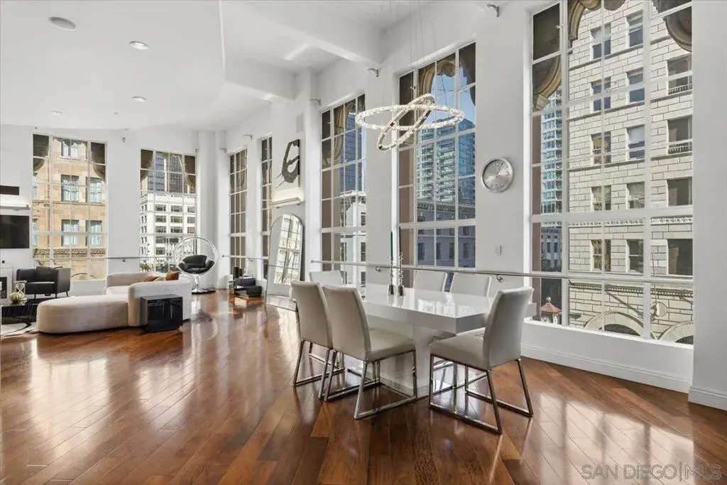 Designed by the renowned architect William Templeton Johnson, this extraordinary Samuel Fox Loft residence offers nearly 2,700 square feet of refined living space. The home’s soaring 16-foot ceilings and expansive windows flood the open-concept interior with natural light. The thoughtfully crafted chef’s kitchen boasts premium Thermador appliances, ideal for both intimate meals and grand entertaining. Enjoy upgraded surround sound, mounted TVs, and Cat 6 wiring for ultra-fast internet connectivity with HOA-included Google Fiber. Step into luxury with two spacious bedrooms, walk-in closets, and two opulent bathrooms. The dual-zone air conditioning ensures comfort year-round. Additional conveniences include a grand foyer, in-unit washer/dryer, and flexible amenities like private storage and Pet-friendly living. Three secure underground parking spaces accompany this home, along with access to a rooftop barbecue and lounging area with dramatic city views. With Mills Act designation significantly reducing annual property taxes, urban sophistication seamlessly meets practicality. All this, moments from the dining, shopping, and vibrant nightlife of Gaslamp Quarter, Little Italy, and Bankers Hill.