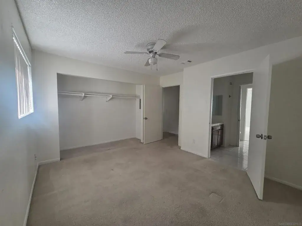 Welcome to this spacious 2 bedroom and 1.5 bath end-unit townhome, bathed in natural light and nestled on a quiet street. The property features gated, remote control access to two covered parking located below this unit. Inside, you’ll find a well-designed layout with two generously sized master bedrooms upstairs, each with ample closet space and connected by a stylish Jack-and-Jill bathroom. Downstairs, there’s a convenient half-bath for guests. The kitchen features abundant storage, tile countertops, a stainless steel sink, a gas stove, and a refrigerator. A sunny refreshed balcony off the living space provides the perfect spot to relax. Additional conveniences include stackable washer and dryer and a security screen door for added peace of mind. Situated in a prime San Diego location, this home is centrally located near shopping, parks, golf courses, bus lines, and John Marshall Elementary School. Whether you’re looking for a primary residence or an investment opportunity, this home is perfectly positioned to offer the best of city living with comfort and convenience. Ideal for first-time homebuyers or small families looking to build equity. Don’t miss this incredible opportunity to own a home in the heart of San Diego—close to everything! Located close to shopping, parks, schools and bus lines. HOA covers water and trash. Selling as is! Bring all offers!