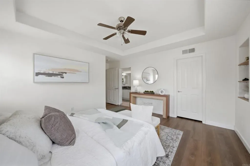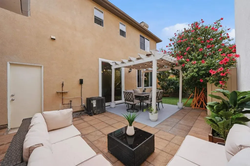 Welcome to this beautifully maintained 3-bedroom, 2.5-bath home in the highly desirable, VA-approved community of Stonecrest Village—perfect for buyers ready to make their move. Designed for both comfort and everyday living, this home features an open-concept layout with upgraded flooring, central A/C, a cozy fireplace, and custom built-ins that create a warm, inviting atmosphere. The bright kitchen offers stainless steel appliances, granite countertops, and ample cabinetry—ideal for entertaining and daily use. Upstairs, the spacious primary suite includes a tastefully remodeled bathroom and a generous walk-in closet. Step outside to your private patio, perfect for relaxing or dining al fresco, plus enjoy the convenience of a two-car attached garage. Residents enjoy resort-style amenities including pools, spas, and more—all centrally located near freeways, shopping, dining, and Snapdragon Stadium. Schedule your tour today!