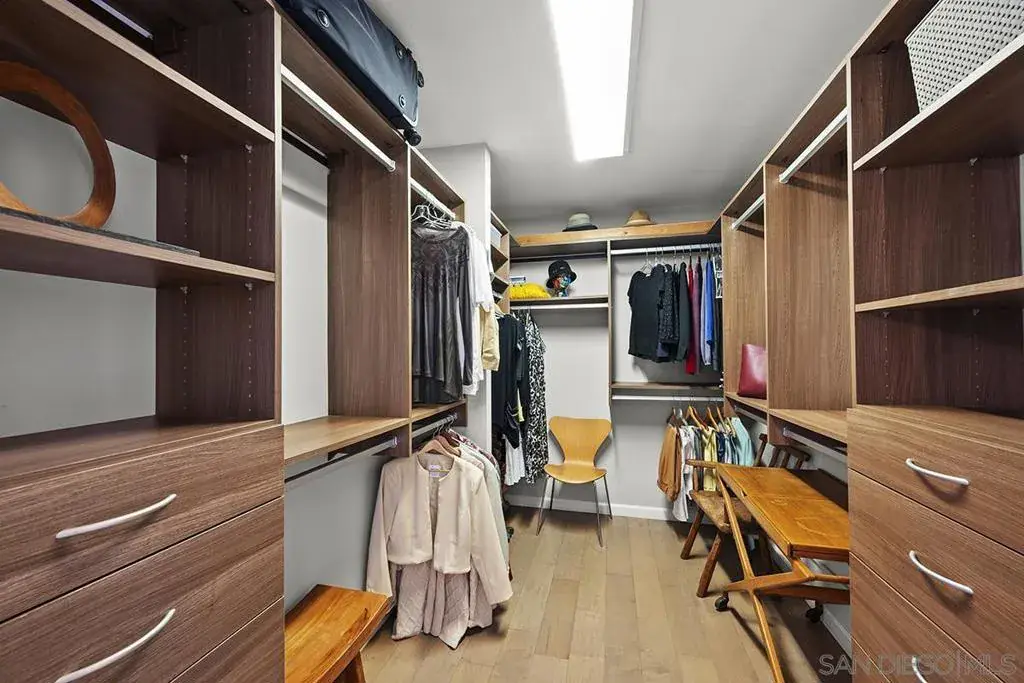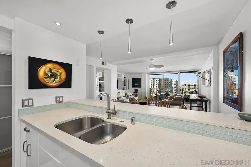 Embrace vibrant city living in this light-filled northwest-corner residence at Coral Tree Plaza, where airy spaces and modern style define everyday comfort. Sunlit and inviting, the expansive living area features sleek engineered wood flooring, custom built-ins, and seamless access to an oversized balcony—an ideal spot to entertain or simply savor San Diego’s signature climate and peaceful city views. The kitchen shines with quartz counters, subway-tile backsplash, contemporary white cabinetry, Bosch appliances, recessed and pendant lighting, a large pantry, and tile flooring. Originally a 3-bedroom layout, the generous bonus den/office currently is open to the living area now for an expansive great-room feel, yet easily re-enclosed should you wish to restore a true third bedroom. The primary suite includes a spacious custom walk-in closet, complemented by a convenient wall of built-ins concealed behind mirrored doors that catch and reflect the day’s sunset. The tastefully updated bath features quartz counters, dual vanities, thoughtfully designed cabinetry, and a walk-in shower. The guest bath offers a modern pedestal sink, stylish sconce lighting, a walk-in shower, and ample built-in storage. In addition to a dedicated laundry closet, you’ll find a large utility closet offering even more storage. Other highlights include side-by-side parking near the elevator and a dedicated storage cage. Just moments from Balboa Park and some of Hillcrest’s best establishments, this condo balances the comfort of a home retreat with the vibrancy of city life. As one of Hillcrest’s long-established residential communities, Coral Tree Plaza offers generous grounds and a well-maintained collection of amenities. Residents enjoy a swimming pool and spa, convenient on-site fitness room, and tennis court. The huge community club room, with its vintage-style fireplace, is an inviting spot for gatherings, ping pong, reading, and the like. The property also features beautiful landscaping, surface guest parking, guest suites, a beloved dog run, and comfortable lobby areas. A block and a half from the back gate, you’ll find yourself in Balboa Park. You’re just as likely to discover a favorite eatery to walk to. Enjoy easy access by car to Downtown, the airport, Mission Valley, and more. Coral Tree Plaza blends home-like comfort with a truly walkable urban lifestyle connected to the best of San Diego.