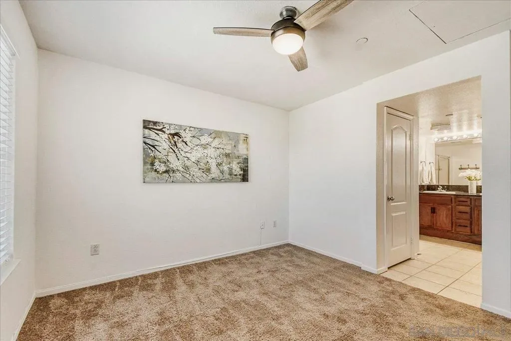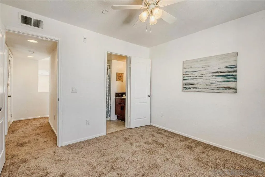 Welcome to this beautifully updated Tribeca townhome, where soaring vaulted ceilings create an open, light-filled atmosphere in the living and dining areas. The layout is thoughtfully designed to feel both spacious and comfortable, making it easy to relax or entertain. The home features three bedrooms, including one set on its own separate level—ideal for added privacy, a home office, or a welcoming guest retreat. The kitchen is well-appointed with brand new appliances, a convenient breakfast bar perfect for casual dining or entertaining, and a cozy breakfast nook just off the kitchen. Additional highlights include interior laundry, fresh paint throughout, and brand-new carpet, giving the home a clean, move-in ready feel. Enjoy multiple outdoor spaces with two private balconies on the second floor—one just off the living area and another off the kitchen—perfect for morning coffee or evening unwinding. Located in a desirable location near the back of the community, this home offers direct access to a two-car tandem garage for added convenience. Residents of the community enjoy access to a pool, spa, and BBQ area, along with a neighborhood park nearby, including a dog park. Ideally located in the heart of San Diego, this home offers easy freeway access and is close to a variety of restaurants, shopping, and local coffee shops. A fantastic opportunity for commuters and anyone looking to enjoy all that San Diego living has to offer. *Some photos have been virtually staged.
