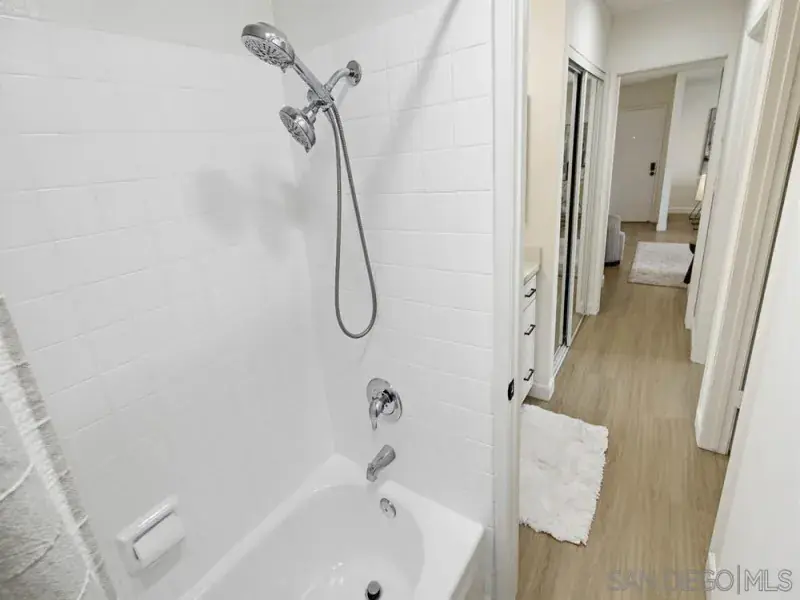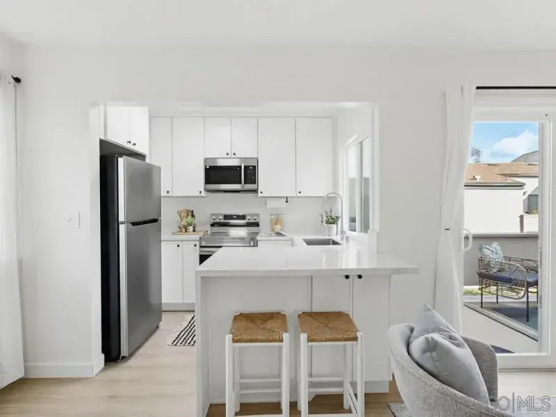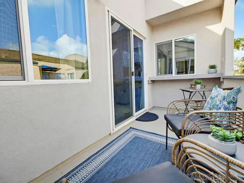 Welcome home to this cutie pie top floor end unit in popular Village Woods. This centrally located, turnkey property features 1 bedroom + optional bedroom/home office, luxury vinyl floors, remodeled kitchen w/stainless steel appliances, newer cabinets & quartz counters, remodeled bath, dual paned vinyl windows & sliders to an oversized private patio. One of the best locations in the complex overlooking greenery, fountains & the pool, plus close to the clubhouse and exercise room. Minutes to Mesa College, shopping, dining & freeways. And just 15 minutes to the beach. VA approved complex! Make homeownership your 2026 goal and get here quick!