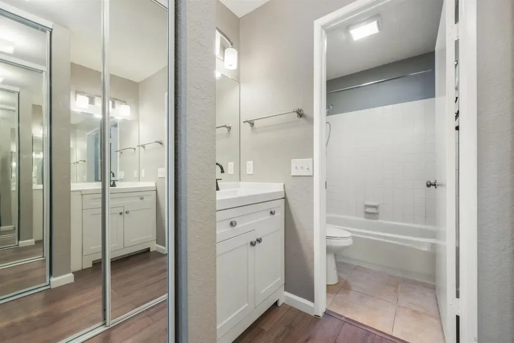 First-floor corner unit with dual primary suites in the heart of Mira Mesa. This well-designed layout features 2 bedrooms, each with its own en-suite bathroom, offering excellent privacy and flexibility for a variety of living situations. The home includes upgraded flooring and a refreshed kitchen, along with an enlarged patio with storage and full-size washer/dryer for added convenience. Located in a quiet, well-maintained community with pool and spa amenities, assigned covered parking just steps from the unit, and ample guest parking. Ideally positioned within walking distance to parks, schools, and shopping, with easy access to major freeways. A practical and well-located option for both owner-occupants and investors in central San Diego.