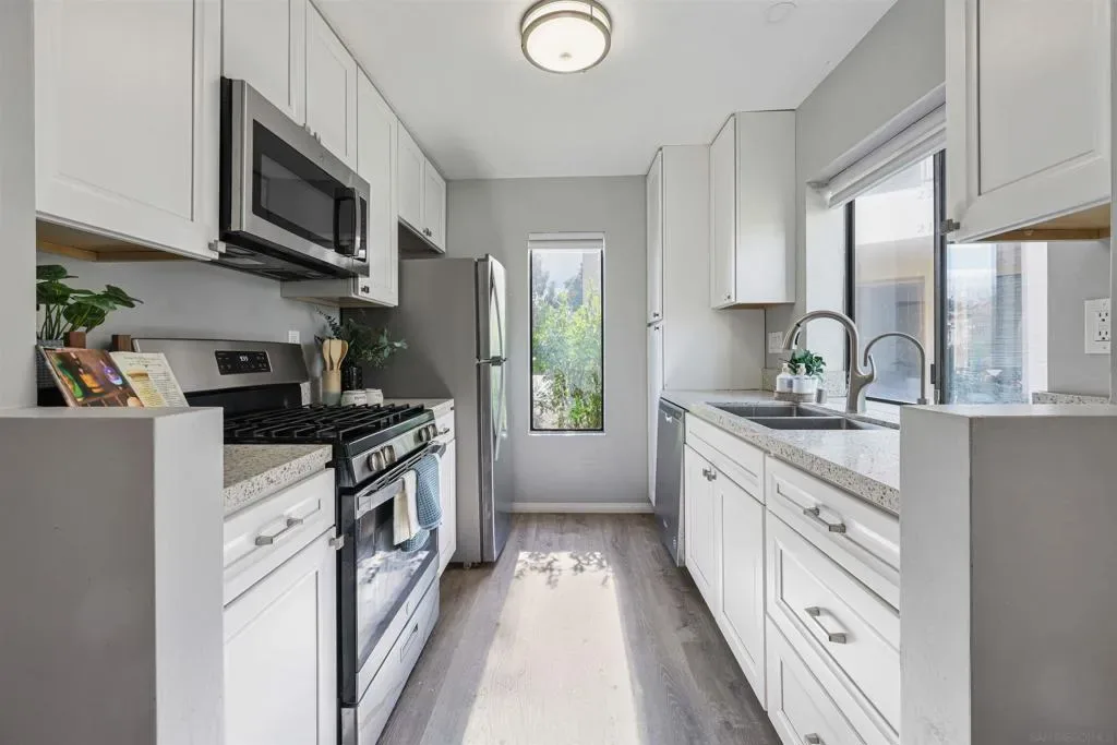 Beautifully Updated First-Floor Condo in Prime Walkable Location! Welcome to this thoughtfully updated 1st-floor condo offering comfort, style, and unbeatable convenience. This move-in ready home features Luxury Vinyl Plank flooring, newer interior paint, new lighting, mirrored closet doors, and a bright, modern feel throughout. property was renovated in 2022 !! The renovated kitchen and bathroom showcase cabinetry, quartz countertops, a gas range, dishwasher. Enjoy the convenience of stackable laundry located in your spacious private patio, with an additional community laundry room nearby if desired. Your covered parking space and the community pool are just steps from the unit entrance ,making everyday living effortless. Location is everything, and this condo truly delivers that! Step outside and enjoy a vibrant, walkable neighborhood where nearly everything you need is within 5–10 minutes: Morning coffee at Better Buzz or Starbucks Breakfast at IHOP Groceries at Vons or Target Pharmacy access at Walgreens or CVS EV charging nearby with Tesla and Electrify America stations Dining options galore: Habit Burger, Chick-fil-A, Chipotle, Little Sakana (all-you-can-eat sushi), Pista House (authentic Indian cuisine), or District 6 Gastropub Mira Mesa Library and neighborhood parks just a short stroll away Whether you’re a first-time buyer, downsizer, or investor, this home offers the perfect combination of modern updates and unbeatable convenience in a highly desirable location. Everything you need is just steps from your front door.