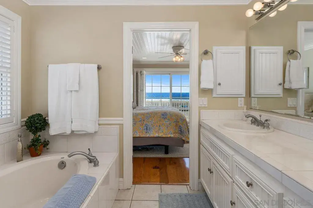 South Mission Beach meets Cape Cod elegance in this stunning 4BD/4.5BA custom oceanfront home offering unobstructed ocean, sand, and sunset views from every level. The main entertaining level features an open-concept living and dining area with hickory hardwood floors, wood beam ceilings, brick fireplace, and hardwood accordion shutters throughout both windows and sliding glass doors. The chef’s kitchen includes imported German porcelain tile countertops, a walk-in pantry, and wet bar with beverage refrigerator. Upstairs, the primary suite opens through full walls of sliding glass doors to an expansive ocean-view deck and offers wide-plank hardwood floors, walk-in closet, and spa-inspired bath with soaking tub, dual vanities, and separate shower. A second en-suite bedroom completes this level. The lower level features two additional en-suite bedrooms and an oceanfront patio framed by mature coastal landscaping. Additional highlights include a 2-car side-by-side garage with guest parking and central air conditioning. Beautifully furnished and available turn-key; furnishings negotiable under separate agreement. Ideally located between the Jetty and the Roller Coaster with direct ocean views and immediate access to the boardwalk, beach, cafés, and coastal amenities. This exceptional South Mission Beach oceanfront residence blends timeless Cape Cod style with the relaxed elegance of Southern California coastal living. Custom designed to capture panoramic ocean, sand, and sunset views from every level, this 4-bedroom, 4.5-bath home offers a rare beachfront experience in one of Mission Beach’s most coveted locations. The main living level features an open-concept layout where expansive glass frames the Pacific beyond. Hickory hardwood floors, exposed wood beam ceilings, and a classic brick fireplace create a warm, inviting atmosphere, while hardwood accordion shutters add both charm and flexibility. The chef’s kitchen is thoughtfully appointed with imported German porcelain tile countertops, a walk-in pantry, generous prep space, and a beverage station with wet bar and refrigerator—ideal for effortless entertaining. Upstairs, the primary suite is a true coastal retreat, opening through walls of sliding glass doors to a sweeping ocean-view deck where sunsets and sea breezes are part of daily life. Wide-plank hardwood floors, a walk-in closet, and a spa-inspired bath with soaking tub, dual vanities, and separate shower complete the space. A second en-suite bedroom on this level provides comfort and versatility for guests or family. The lower level offers two additional en-suite bedrooms and opens to an oceanfront patio surrounded by mature coastal landscaping, creating a private garden just steps from the sand. This seamless indoor-outdoor connection enhances the home’s livability, whether hosting, relaxing, or enjoying quiet mornings by the water. Additional features include a 2-car side-by-side garage with guest parking, central air conditioning, and curated furnishings that complement the home’s coastal palette. The property may be sold turn-key under a separate agreement, offering a truly effortless move-in opportunity. Perfectly situated between the Jetty and the historic Roller Coaster, this home enjoys direct, head-on ocean views, immediate boardwalk access, and close proximity to cafés, coffee shops, and beach essentials. Ideal as a full-time residence, luxury retreat, or legacy property, this is coastal living at its finest—defined by location, design, and attention to detail.