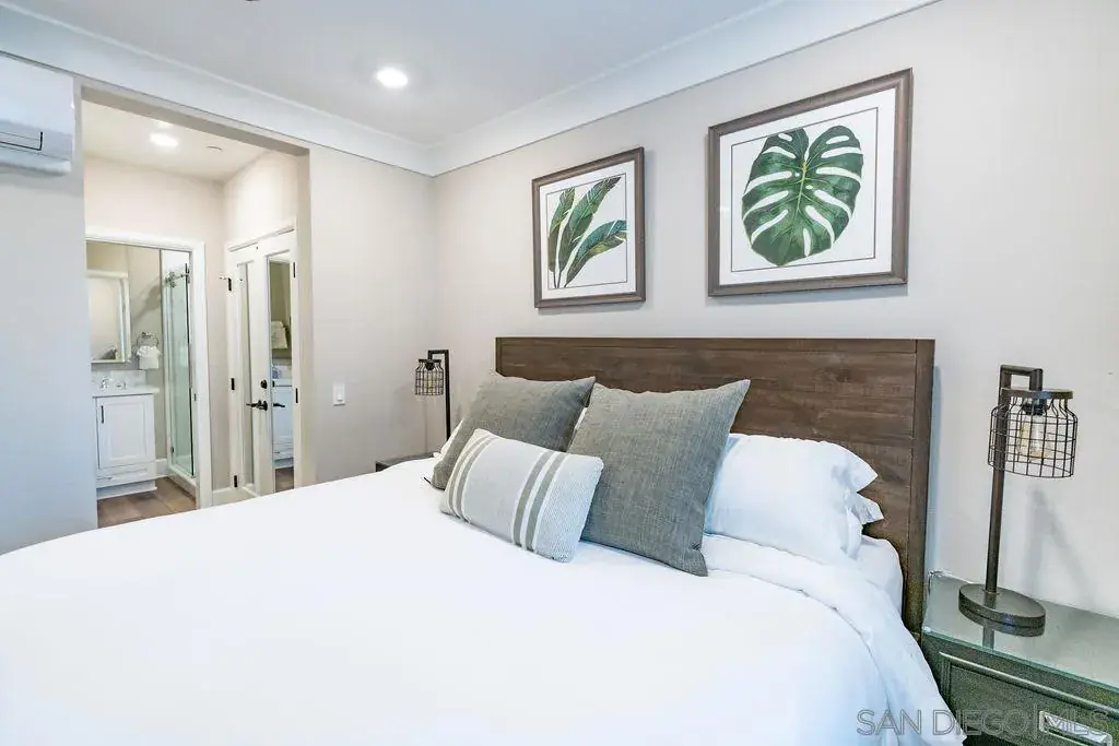 Welcome to this immaculate 3 bedroom, 2 bath beach house, just a brisk walk to both Mission Bay and Mission Beach! Peek water views from Balcony! The space This freshly built, crisp and clean residence is fully-equipped with everything you need for the ideal beach vacation. Beautiful Mission Bay is a mere short steps from the front door and famous Mission Beach is just a short stroll until your feet hit the sand. The three bedrooms are perfectly situated with the primary being an en-suite complete with king bed and bathroom with gleaming shower, along with two additional guest bedrooms each with their own comfy queen beds. All rooms have flat screen TV’s for your enjoyment. There is a combo shower/tub guest bathroom as well. The sunny living room flows into the lavish kitchen and dining for the ideal gathering space – relax, cook, and take in the coastal breeze. Delight in a cup of coffee in the sleek, bright kitchen at the breakfast bar with three barstool seats, and savor a casual lunch or sundown dinner at the dining table which accommodates six people. The kitchen features polished countertops and stainless steel appliances to create all your favorite dishes, but you can also grill outside should you desire. Sliding doors open to the balcony off of the living room which boasts a bay view and covered lounge space, plus there is a spacious entry patio complete with table/chairs, and firepit for watching sunsets and open air dining. You’ll also enjoy the the BBQ and outdoor shower! RATES ARE SUBJECT TO LENGTH OF TERM AND SEASON. Welcome to this immaculate 3 bedroom, 2 bath beach house, just a brisk walk to both Mission Bay and Mission Beach! Peek water views from Balcony! The space This freshly built, crisp and clean residence is fully-equipped with everything you need for the ideal beach vacation. Beautiful Mission Bay is a mere short steps from the front door and famous Mission Beach is just a short stroll until your feet hit the sand. The three bedrooms are perfectly situated with the primary being an en-suite complete with king bed and bathroom with gleaming shower, along with two additional guest bedrooms each with their own comfy queen beds. All rooms have flat screen TV’s for your enjoyment. There is a combo shower/tub guest bathroom as well. The sunny living room flows into the lavish kitchen and dining for the ideal gathering space – relax, cook, and take in the coastal breeze. Delight in a cup of coffee in the sleek, bright kitchen at the breakfast bar with three barstool seats, and savor a casual lunch or sundown dinner at the dining table which accommodates six people. The kitchen features polished countertops and stainless steel appliances to create all your favorite dishes, but you can also grill outside should you desire. Sliding doors open to the balcony off of the living room which boasts a bay view and covered lounge space, plus there is a spacious entry patio complete with table/chairs, and firepit for watching sunsets and open air dining. You’ll also enjoy the the BBQ and outdoor shower! For added satisfaction, there are air conditioning systems throughout the home, in-unit washer and dryer, sleeper sofa couch, and one compact parking space in the garage. This home is where guests can unwind and enjoy the beach lifestyle in a relaxed, yet splendid atmosphere! Sleeping Accommodations (Maximum 6 guests): Bedroom 1 – King bed Bedroom 2 – Queen bed Bedroom 3 – Queen bed Sleeper sofa Guest access You get to enjoy the entire home during your stay. Other things to note – Pack n’ play and high chair available for rent – $25 each plus tax – Puzzles and board games provided. – This property has two levels so there are stairs. The main level is entrance, laundry and garage. The second level includes the living/dining spaces and all bedrooms/baths. – There is one garage parking space for a compact vehicle. Large cars will not fit in the space. There is street parking otherwise. – You must be 21 years or older to r…