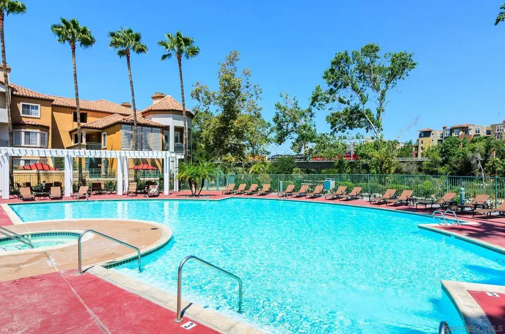 Resort style living in the heart of Mission Valley. Light and bright second floor unit in highly coveted River Colony. Split floor plan with bedrooms separated by the living room. Master bedroom features two closets. Second bedroom has a walk-in closet. River Colony features a resort style pool, spa, and gym. Walk to shopping, dining, and the trolley. Easy freeway access. Minutes from downtown and the beach. Community amenities elevate everyday living with a swimming pool, fitness center, clubhouse, scenic walking trails along the San Diego River, and secure underground parking. An ideal blend of comfort, convenience, and classic San Diego living.