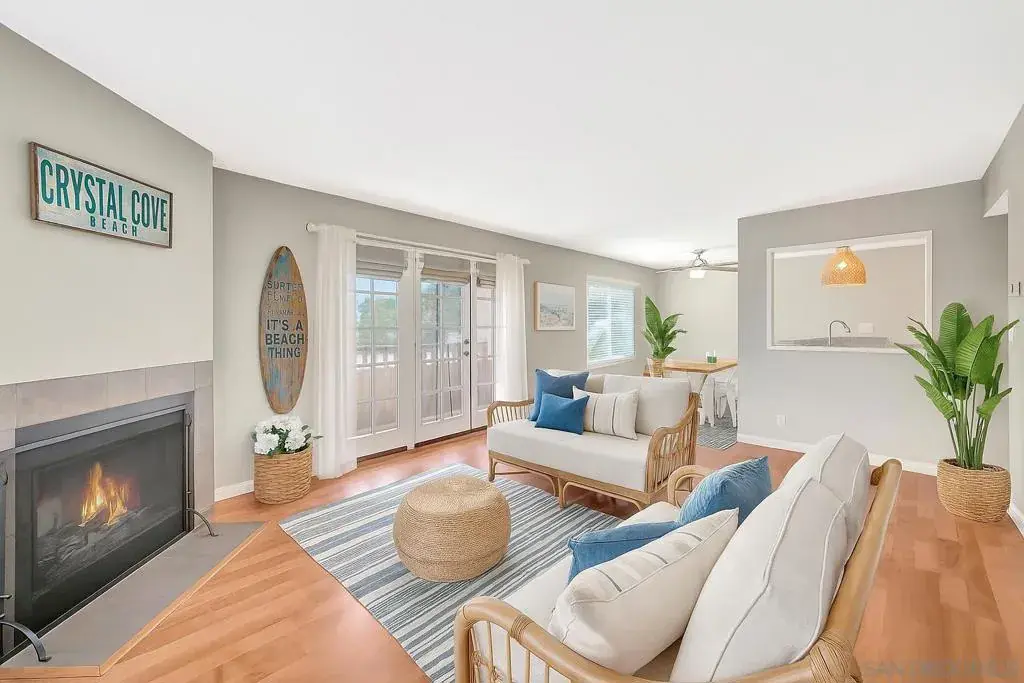 Super cute and move-in ready! This bright and airy 2 bed, 2 bath condo features a spacious open layout filled with natural light, a cozy fireplace, and a private west facing balcony, perfect for relaxing, taking in the ocean breeze and watching beautiful San Diego sunsets or Sea World fireworks. Enjoy the convenience of your own full-size laundry closet and garage for parking and storage. This small complex features a pool and hot tub and is very well maintained. Ideally located near USD with easy access to freeways, shopping, dining, and the nearby trolley stop. A charming home in a prime location, don’t miss this opportunity!
