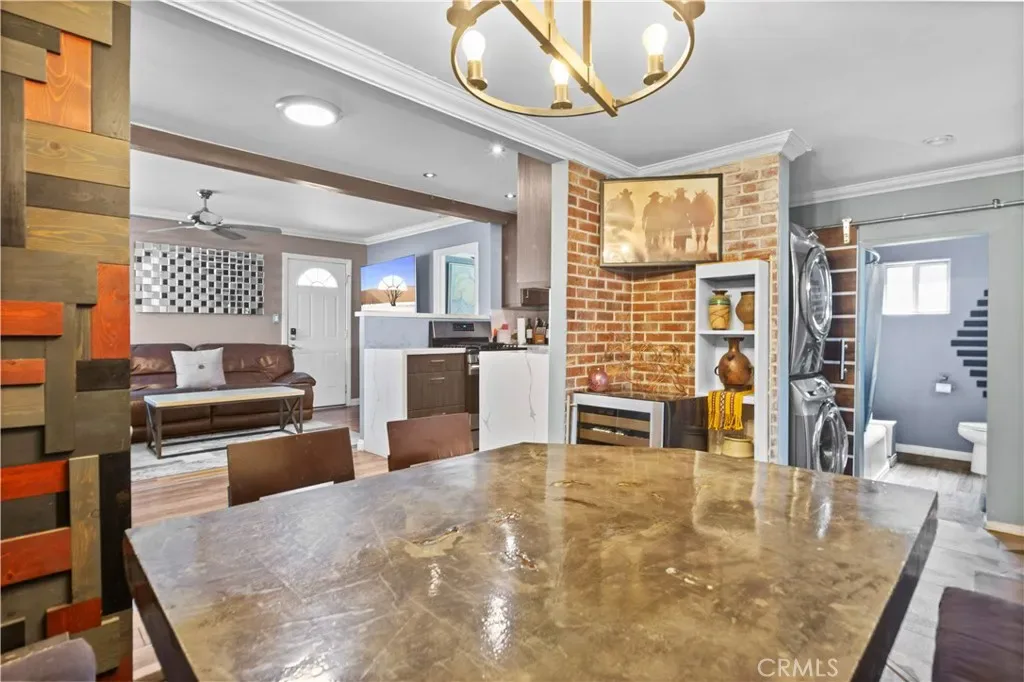 The bright and airy interior flows seamlessly from the living room, anchored by historic details and rich hardwood floors, into a dining area and a well-appointed kitchen. Designed for both style and function, the kitchen boasts sleek quartz countertops, a full suite of stainless-steel appliances, and ample storage.