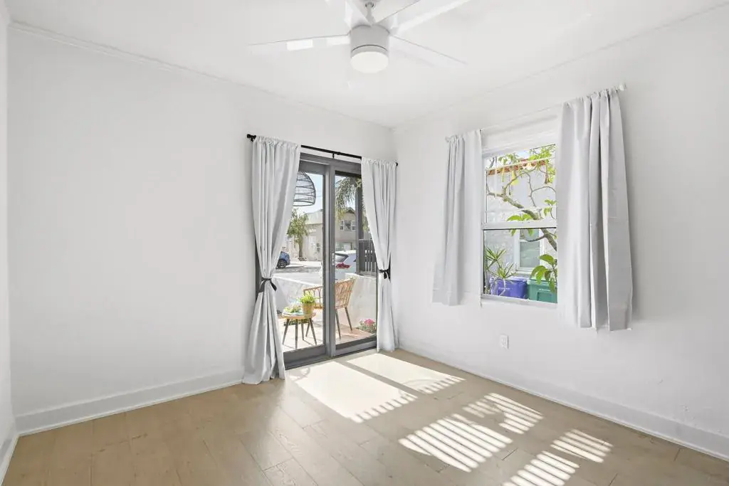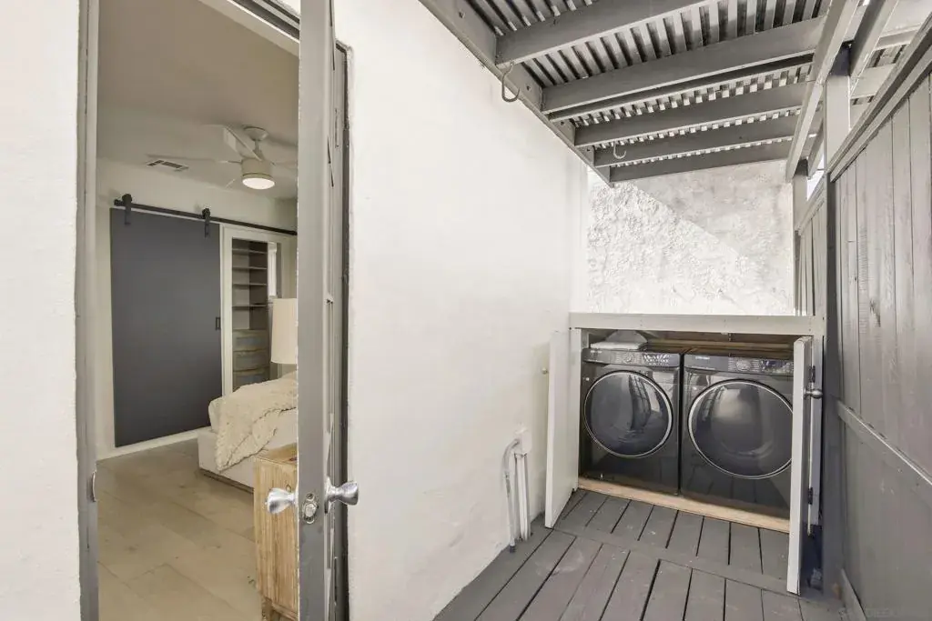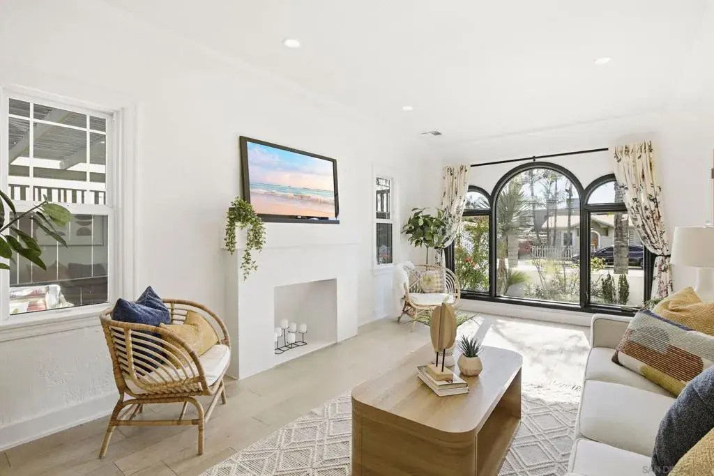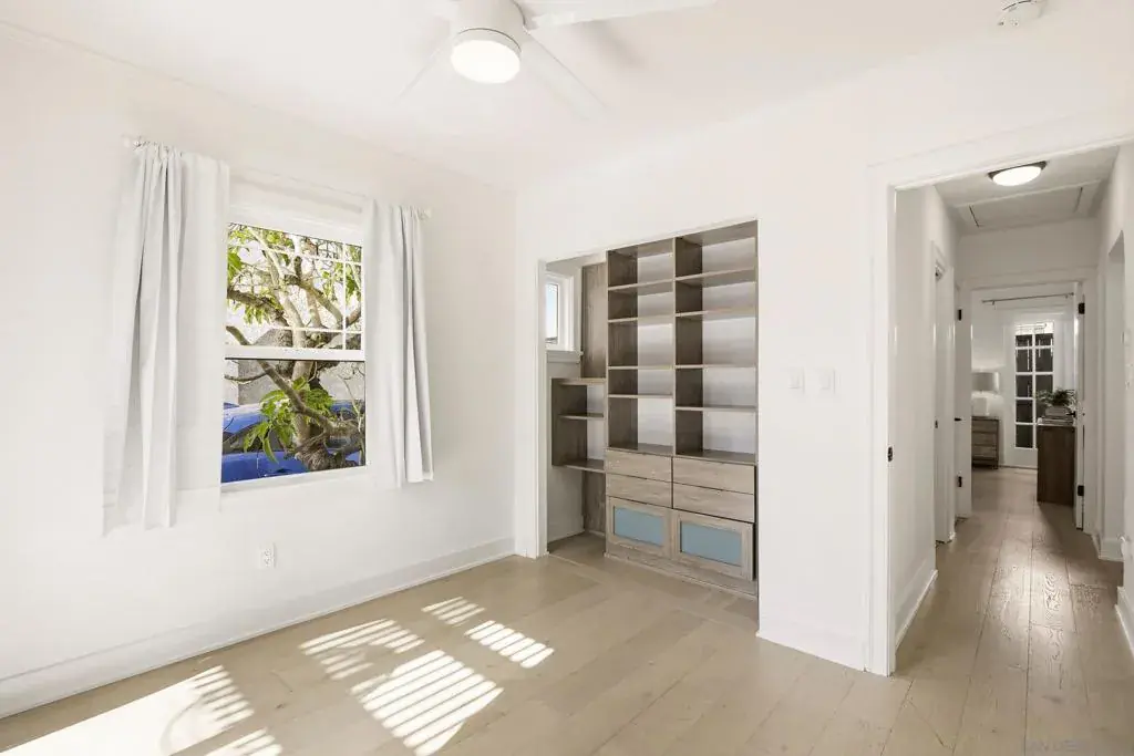 Charming 1928 Spanish-Revival home with detached flex space in the heart of North Park. Main home has 2 beds, 1 bath, updated kitchen, gated courtyard, private patio, and off-street parking. Flex space has a full bath, for guests, office, or creative studio. SOLAR PPA, central A/C, tankless water heater, newer appliances, and updated baths. Original details like arched windows and cove ceilings add character. Private driveway, indoor-outdoor living, and walkable location complete this exceptional property. Spanish Revival home has 2 bedrooms and 1 bath, plus a detached flex space with a full bath, offering timeless character, modern comforts, and a flexible layout in one of North Park’s most vibrant, walkable neighborhoods. The property includes a 2.9kW (10-panel) PPA solar system, tankless water heater, central A/C, dual pane windows, dedicated off-street parking for 1 car, and private outdoor spaces. Enter through a gated courtyard with classic Saltillo tile, a charming porch, and landscaping of palms, cactus, and colorful plantings that evoke a relaxed Baja vibe. Inside the main home, expansive south-facing picture windows fill the living space with natural light. Architectural details include coved ceilings, a graceful arch, and a decorative fireplace, complemented by laminate wood flooring throughout and decorative tile in the bathroom. The updated kitchen features custom cabinetry, quartz countertops, open shelving, and Kitchen-Aid stainless appliances including a 5 burner gas range. From the dining area, French doors open to a private courtyard patio for morning coffee, evening relaxation, or a yoga and exercise space. Both bedrooms offer closets with built-in organizers and ceiling fans. The front bedroom has abundant sunlight from a south-facing sliding door opening directly to the front courtyard, while the rear bedroom features a French door leading to the back deck where a full-size washer and dryer are discreetly housed in a weather-proof cabinet. The bonus detached flex space adds finished, usable space including a full bath with designer tile and shower, a mini-split system for heating and cooling, and French doors that open to the shared enclosed patio. Property is a short walk to the North Park Recreation Center, sports fields and courts, dog parks, and North Park’s renowned restaurants, cafés, and shops. This home delivers architectural charm, versatility, modern cocnvenience and an active urban lifestyle in one exceptional offering.