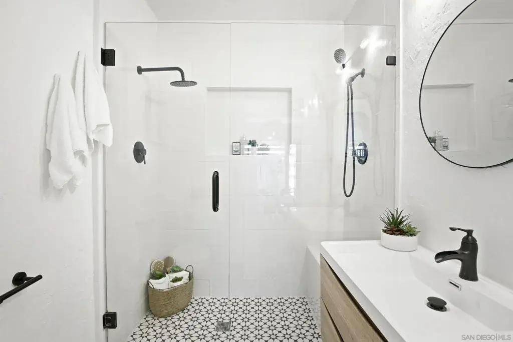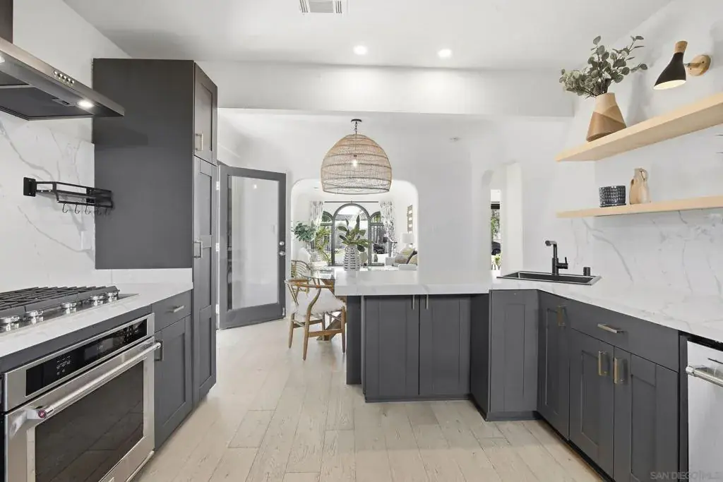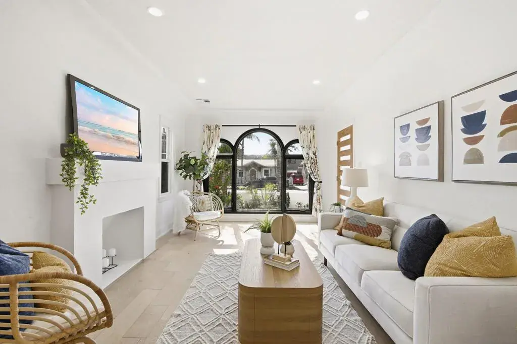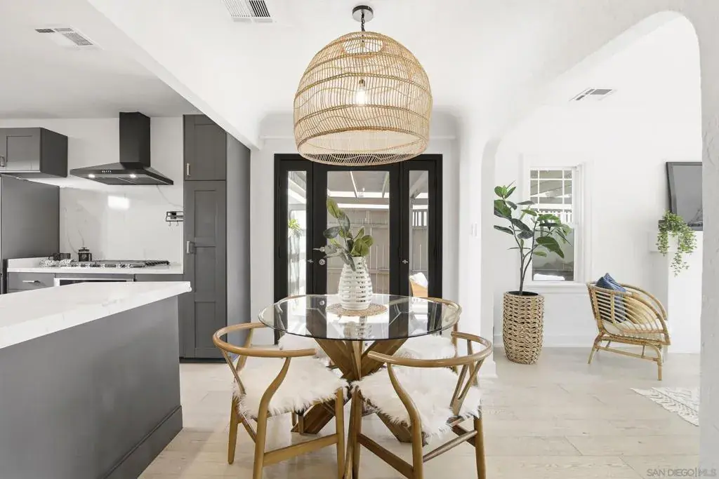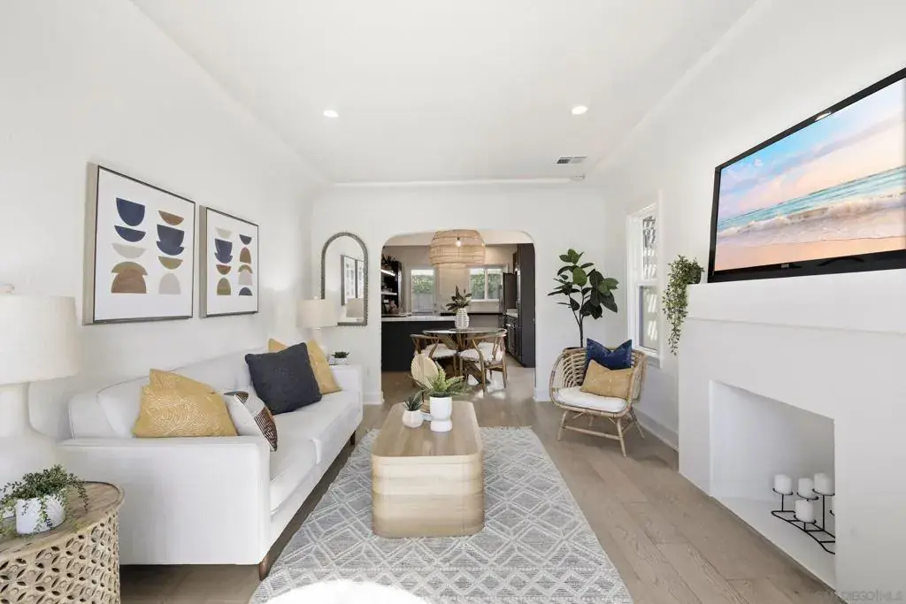 Charming 1928 Spanish-Revival home with detached flex space in the heart of North Park. Main home has 2 beds, 1 bath, updated kitchen, gated courtyard, private patio, and off-street parking. Flex space has a full bath, for guests, office, or creative studio. SOLAR PPA, central A/C, tankless water heater, newer appliances, and updated baths. Original details like arched windows and cove ceilings add character. Private driveway, indoor-outdoor living, and walkable location complete this exceptional property. Spanish Revival home has 2 bedrooms and 1 bath, plus a detached flex space with a full bath, offering timeless character, modern comforts, and a flexible layout in one of North Park’s most vibrant, walkable neighborhoods. The property includes a 2.9kW (10-panel) PPA solar system, tankless water heater, central A/C, dual pane windows, dedicated off-street parking for 1 car, and private outdoor spaces. Enter through a gated courtyard with classic Saltillo tile, a charming porch, and landscaping of palms, cactus, and colorful plantings that evoke a relaxed Baja vibe. Inside the main home, expansive south-facing picture windows fill the living space with natural light. Architectural details include coved ceilings, a graceful arch, and a decorative fireplace, complemented by laminate wood flooring throughout and decorative tile in the bathroom. The updated kitchen features custom cabinetry, quartz countertops, open shelving, and Kitchen-Aid stainless appliances including a 5 burner gas range. From the dining area, French doors open to a private courtyard patio for morning coffee, evening relaxation, or a yoga and exercise space. Both bedrooms offer closets with built-in organizers and ceiling fans. The front bedroom has abundant sunlight from a south-facing sliding door opening directly to the front courtyard, while the rear bedroom features a French door leading to the back deck where a full-size washer and dryer are discreetly housed in a weather-proof cabinet. The bonus detached flex space adds finished, usable space including a full bath with designer tile and shower, a mini-split system for heating and cooling, and French doors that open to the shared enclosed patio. Property is a short walk to the North Park Recreation Center, sports fields and courts, dog parks, and North Park’s renowned restaurants, cafés, and shops. This home delivers architectural charm, versatility, modern cocnvenience and an active urban lifestyle in one exceptional offering.