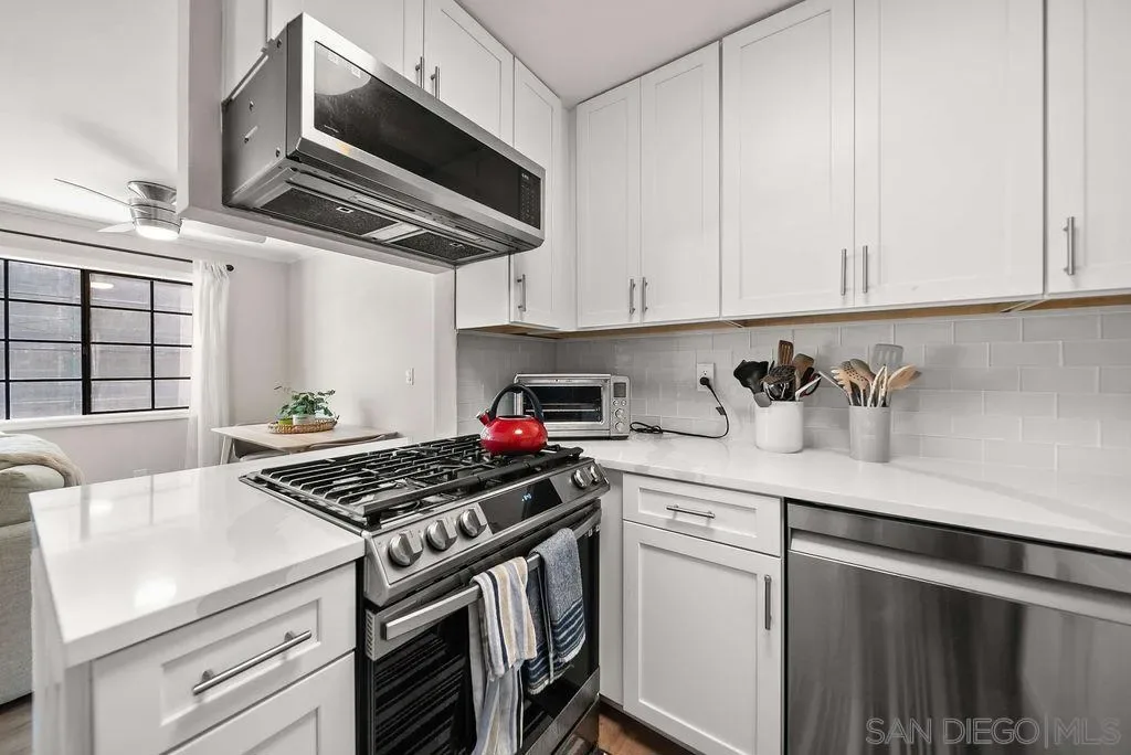 Welcome to 4205 Ohio St, Unit 207 – your stylish urban hideaway in the heart of dynamic North Park! This sophisticated condo perfectly combines modern living with exceptional convenience, ideal for anyone seeking the vibrant city lifestyle. Step into a bright and airy open-concept space, thoughtfully designed with contemporary finishes. The kitchen shines with quartz countertops, stainless steel appliances, and plenty of storage—perfect for everything from quick breakfasts to dinner parties. The living room is bathed in natural light, offering a cozy yet elegant space to relax or host guests. The primary bedroom features a spacious layout with custom closet systems and a remodeled en-suite bathroom complete with a new vanity. The second bedroom is ready to meet your needs, whether as a welcoming guest room, a productive home office, or your personal creative space. Smart appliances throughout the unit add a touch of modern convenience to your daily life. This unit also includes the must-have convenience of in-unit laundry, central air, and secure garage parking. Situated just steps away from North Park’s hottest restaurants, charming cafes, boutique shops, and buzzing nightlife, you’ll have everything you love within reach. Plus, with easy access to major freeways and downtown San Diego, this location truly delivers the best of urban living. Don’t wait—schedule your tour today and experience this incredible home for yourself!