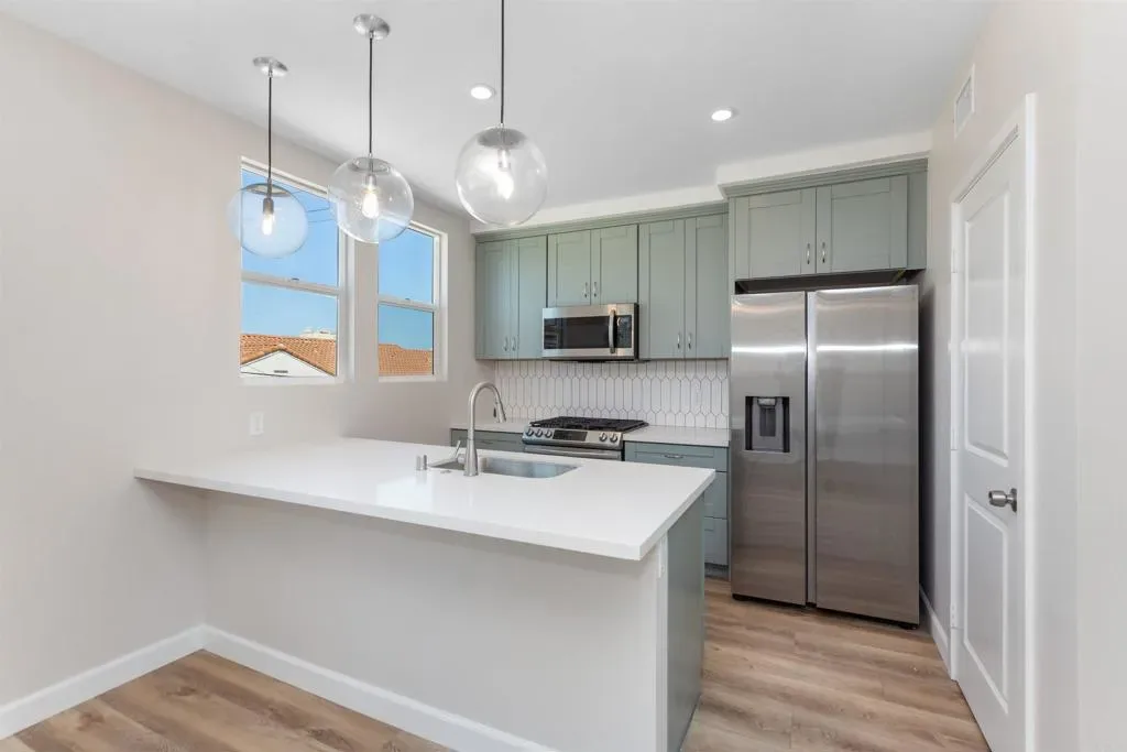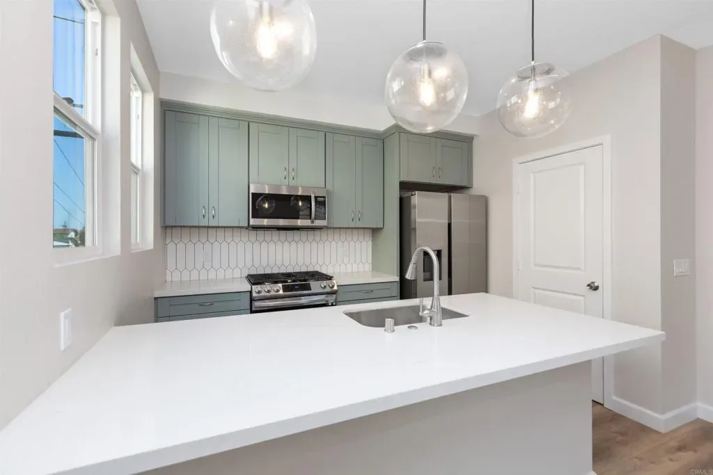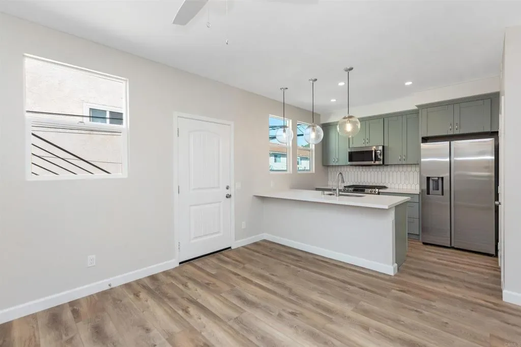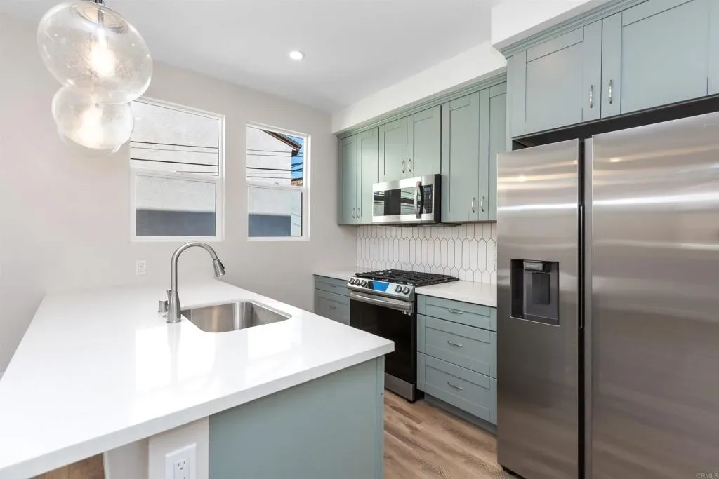 Ocean Beach – Near new duplex construction with excellent location! One unit is rented, 2nd unit available for May 1st move-in, $3,300/month, All utilities included (Water/Natural Gas/Electricity/Trash). 2nd floor unit available, includes attached one car garage. Each unit features an open floor plan with a large living /dining space, 2 spacious bedrooms, 2 full baths and attached 1 car garage. The brand new kitchen has quality cabinets, quartz counters, an island-type bar with pendant lights, pantry and stainless steel appliances (including fridge). Each bedroom offers ceiling fans, large windows, luxury vinyl plank flooring and closet. Some of the windows offer views of the lagoon, neighborhood and city lights. Each unit offers 2 baths with tile flooring, tub/shower combo and free standing vanity. Interior laundry closet with washer/dryer combo. Exterior design in final stage of construction (Landscaping), completion soon. Desirable Ocean Beach: the location is convenient; close to parks, beaches, bikeways, shopping centers, restaurants, schools, with easy freeway access. Live the Southern California Lifestyle! Pets are considered with restrictions. The square footage is approximate and not guaranteed.