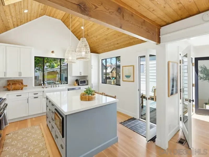 East Coast farm house meets the Southern California beach cottage! This single level stunner features 3br/2ba, loft area & family room + a detached guest suite. Gorgeous remodeled kitchen w/high end appliances & finishes, refinished natural wood floors, vaulted wood ceilings, French doors, cool wood burning stoves w/white washed brick, multiple skylights, spacious bedrooms & walk in closets. Beautiful yards w covered front porch, outdoor shower, a spa & beautiful fruit trees. Owned solar w/Tesla power wall, perfectly level front & back yards, alley access, a parking pad for a boat or RV, and just a couple of blocks to coveted Silver Gate Elementary. Award winning schools, sandy beaches, yacht clubs & the marina, plus 10 minutes to Downtown & the airport. This home is VERY special, and it could be yours!!!