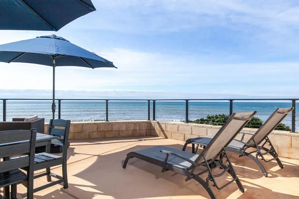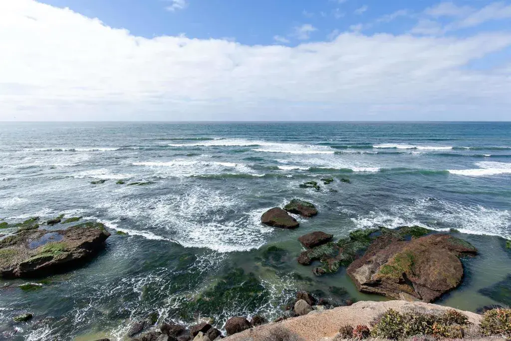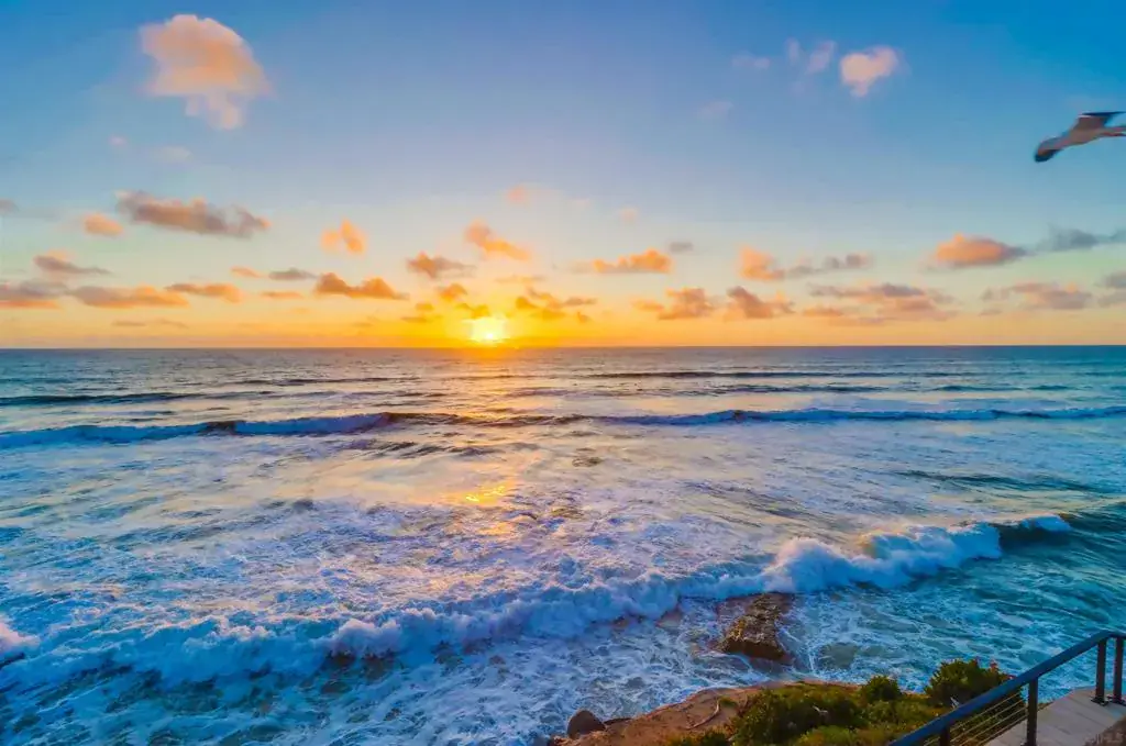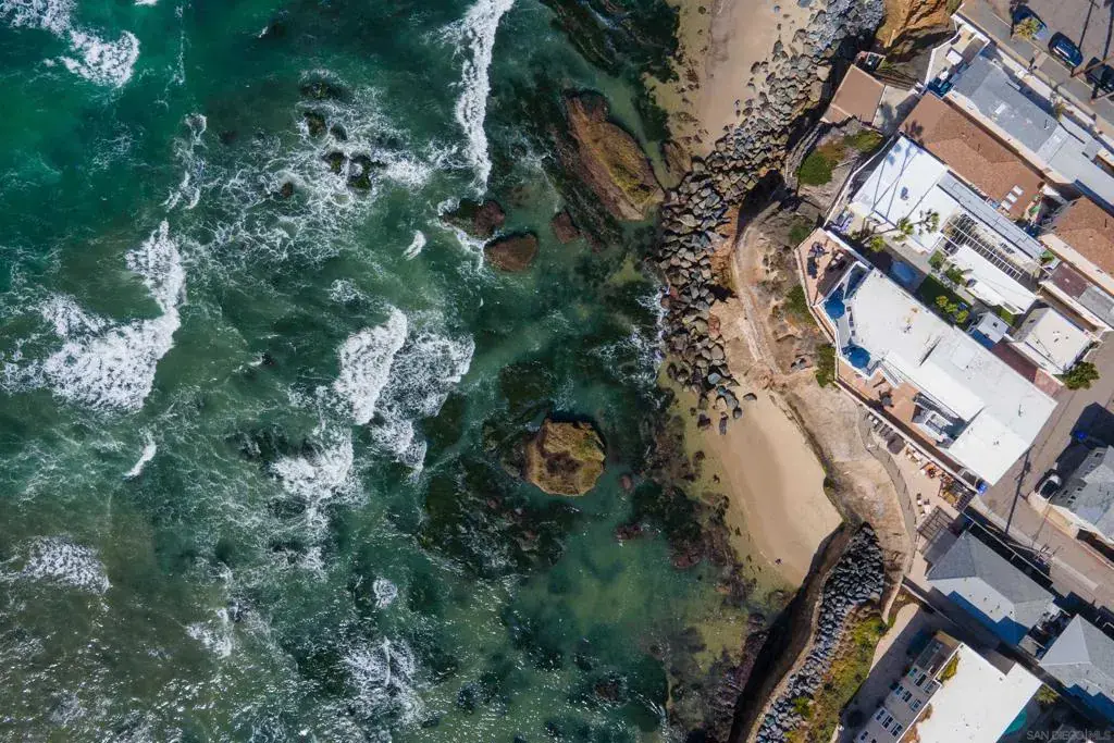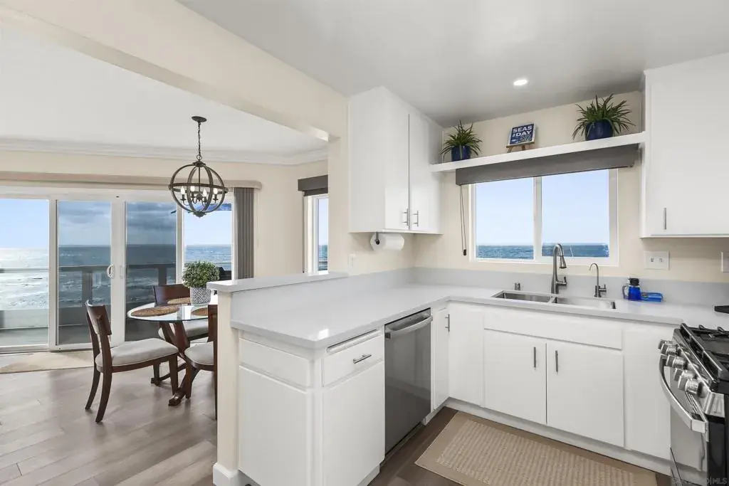 Rare true oceanfront income property in Sunset Cliffs with sweeping ~280° sit-down ocean views, exceptional privacy, and beautifully renovated, turn-key interiors. Includes four upgraded 2BR residences plus two well-finished bonus studio units, offering excellent flexibility and income potential. Renovations from 2020–2025 include quartz counters, stainless appliances, LVP flooring, updated baths, dual-pane windows, and cohesive coastal-modern finishes. Three residences perform strongly as VRBO short-term rentals, while the remaining units are month-to-month long-term rentals with significant upside. Additional highlights: rare 4-car garage, new garage doors, new staircases, and multiple ocean-facing decks/patios. The renovation included major permitted improvements, expanded living areas, and comprehensive upgrades to core systems including HVAC with central air conditioning, plumbing, and electrical, along with a newly rebuilt garage and additional finished living space above. Multiple outdoor decks were created to maximize panoramic views, including decks off the primary suite, living area, and the library/bedroom suite above the garage. The kitchen is appointed with a full Thermador suite including refrigerator/freezer columns, wine refrigerator, double ovens, and a 6-burner range with griddle and pot filler, plus a large granite waterfall island with seating for five. Decking is Trex with updated iron railings, and the patio is plumbed for gas for a future fire feature. The primary suite features Italian Carrara marble finishes, dual sinks, separate water closet, walk-in closet and additional closet storage, and the primary bath and powder room are equipped with bidets. The lower level functions as a true guest suite with a spacious family room, full kitchenette, separate entry, laundry, large closets, plus a private bedroom and full bath.