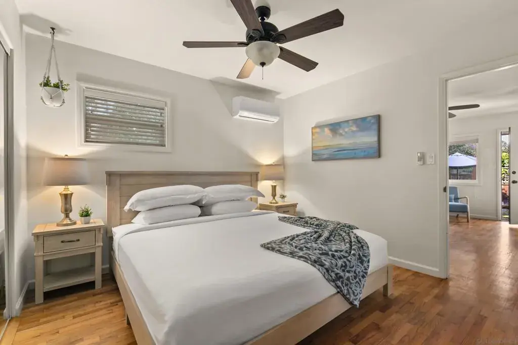 FURNISHED MIDTERM & LONG-TERM RENTAL — PB Bungalow: Remodeled w/ Private Yard & Parking Charming 1BR / 1BA remodeled Pacific Beach bungalow just seven blocks to the ocean and a short walk to Mission Bay. Enjoy a cozy living room with sleeper sofa, flat-screen TV, and dining area for four. Fully equipped kitchen includes quality appliances and all essentials for easy home cooking. Spacious bedroom offers a king bed, flat-screen TV, and ensuite bath. Step outside to a private, gated backyard—your own green oasis with grassy space, market-light ambiance, alfresco dining for four, and a BBQ for outdoor cooking. Pet-friendly and perfect for enjoying the California sunshine. Additional conveniences include two mini-split A/C systems, in-unit washer/dryer, and one driveway parking space. Ideal for singles, couples, relocation clients, and extended stays seeking comfort and walkability in Pacific Beach. Sleeping Setup (max 2): BR1 King • Living Room Sleeper Sofa 1 Full Bath Available fully furnished only. Rates reflect short-term rental pricing and vary by season and length of stay. Published amounts are estimates; final pricing, fees, and availability are subject to change until a signed agreement. Please inquire for an exact quote. STR-07020L • TOT 648025 Rates reflect short-term rental pricing and vary by season and length of stay. Published amounts are estimates; final pricing, fees, and availability are subject to change until a signed agreement. Please inquire for an exact quote.